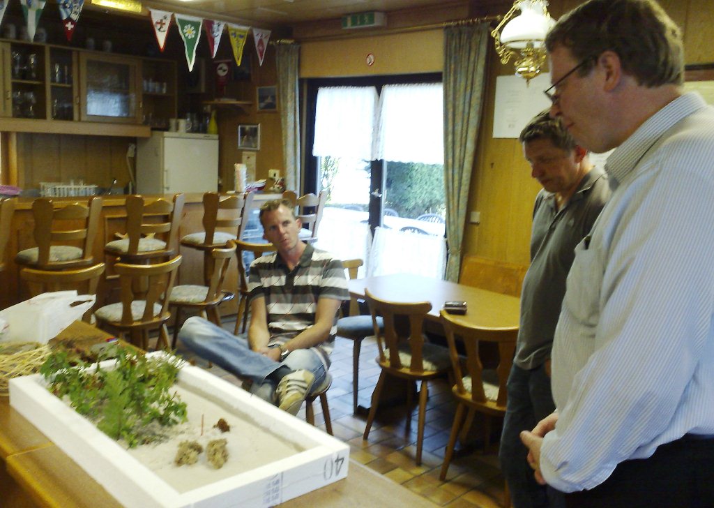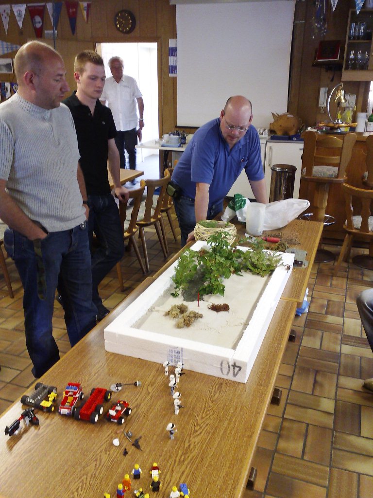 Um Gefechtsszenarien vor zu üben und durchzuspielen eignet sich der Sandkasten. Im Rahmen der taktischen Weiterbildung sollten neben den Abläufen auch die Befehlsgebung und Meldungen geübt werden. Kamerad Müller hatte daher einen kleinen Sandkasten für die Taktik gebaut um mit den Reservisten der RK Nürnberg die Weiterbildung durchzuführen.