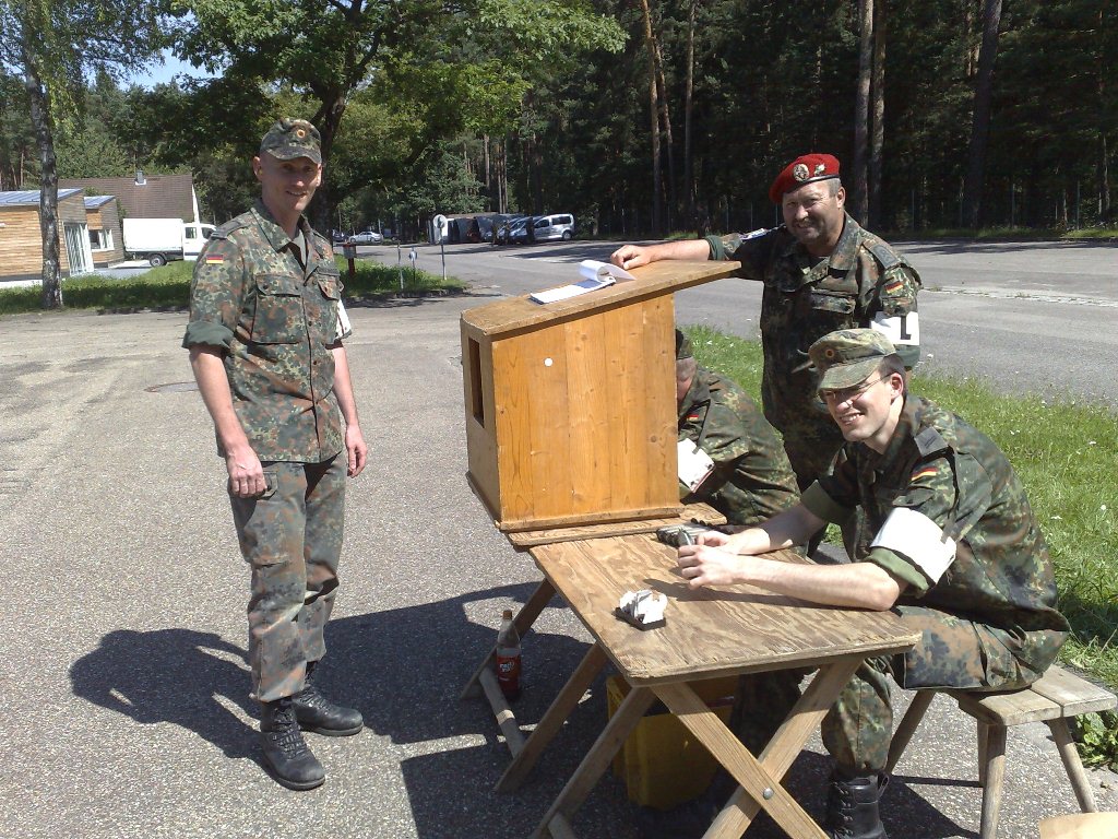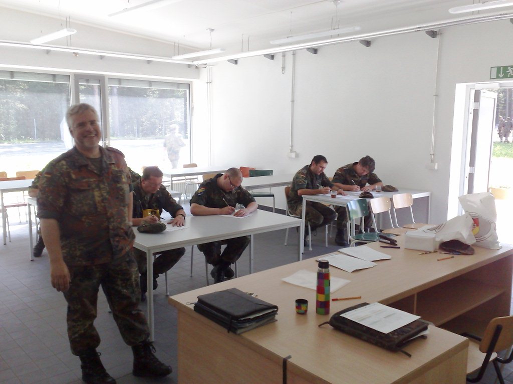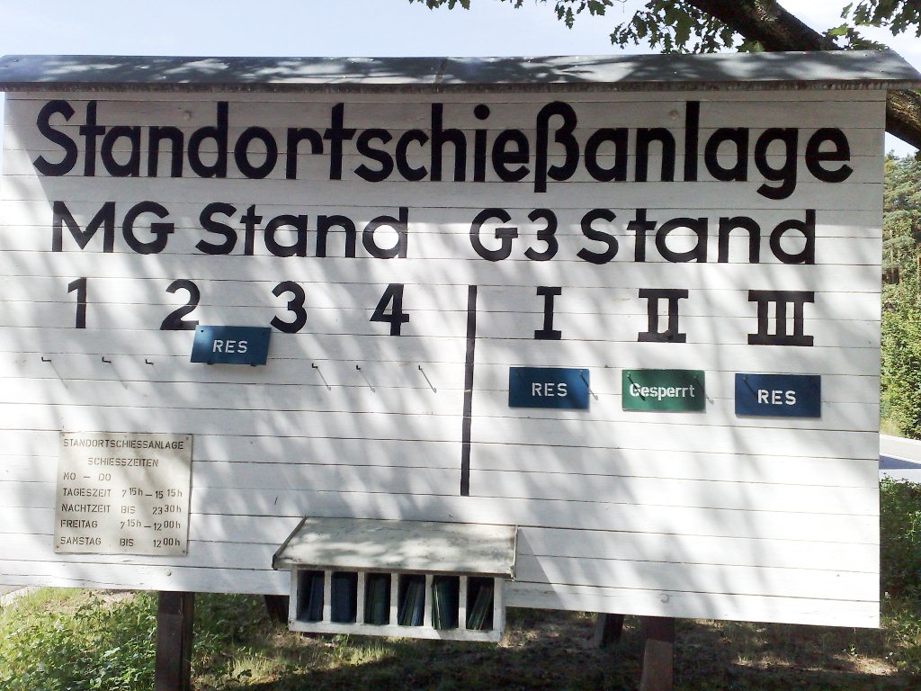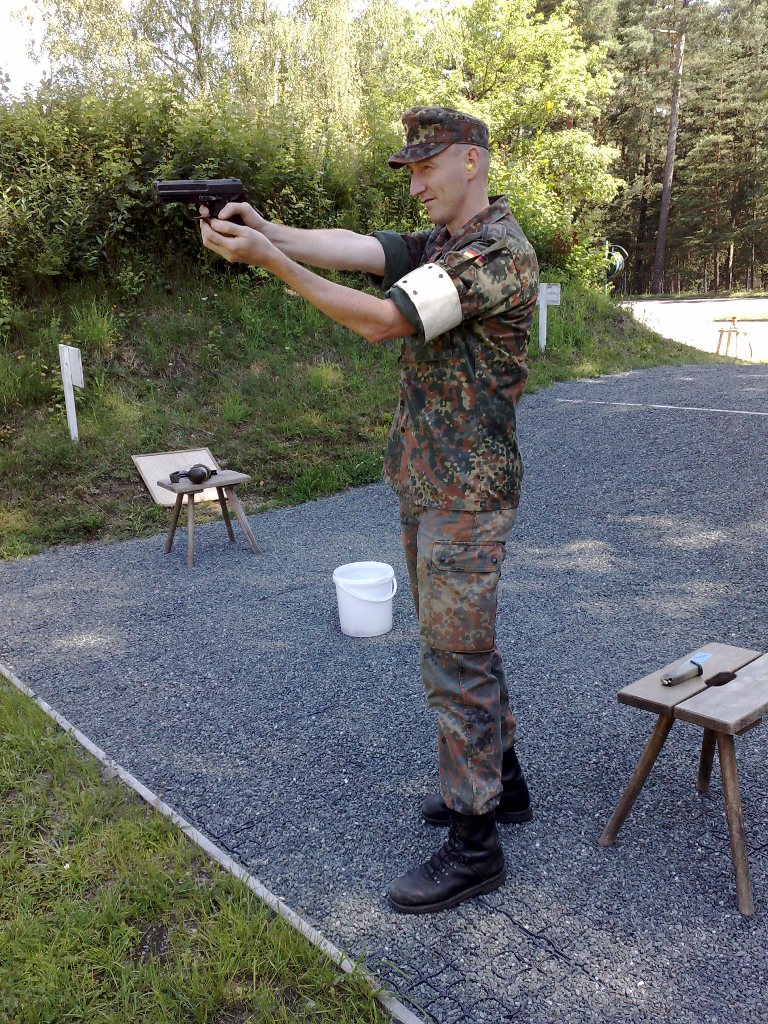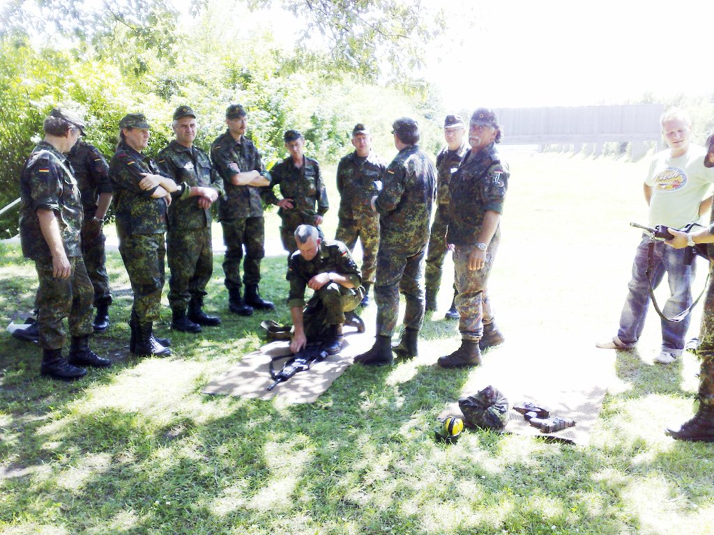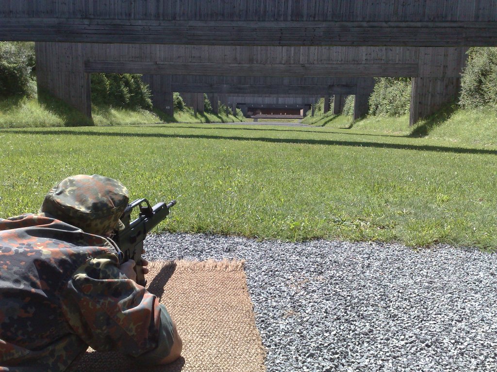 Beim Ausbildungstag mit Schießen standen als Schießübungen Übungen mit der Pistole P8 und dem Gewehr G36 auf dem Programm. Vor allem die für viele Reservisten noch neue Übung G36-S-9 mit verschiedenen Entfernungen bereitete Anfangs Probleme mit der Erfüllung der Leistungen. Im Laufe des Tages besserten sich die Ergebnisse. Hier zeigte sich einfach, dass die Reservisten in der Vergangenheit nur in Ausnahme mit dem G36 geschossen haben und immer noch auf das G3 zurückgreifen mussten.