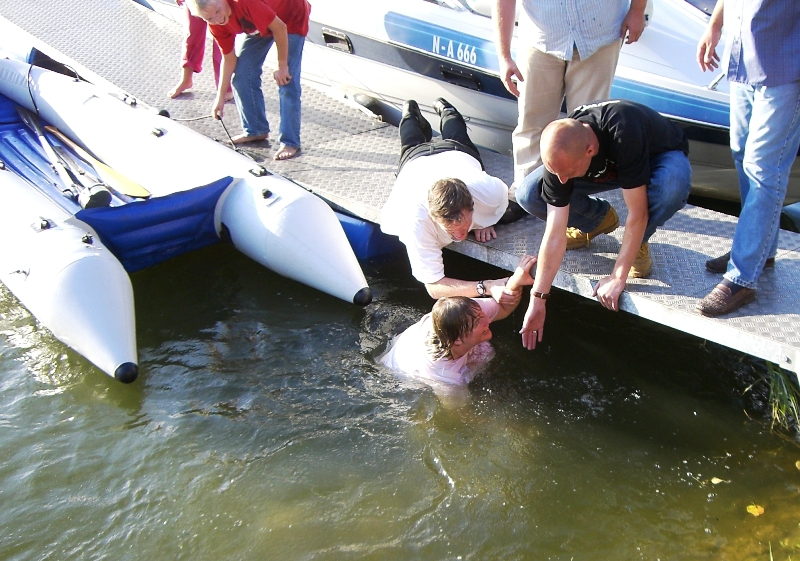 Vorbereitenden Ausbildung auf dem Trockenen mit richtiger Einrückfolge, Befehlsgebung, zuwasserlassen und anlanden bildeten die Basis für den späteren praktischen Test. Dass die vorbereitende Ausbildung notwendig war, bewies eine Mannschaft, die unbedingt beim Wiederanlanden und Verlassen des Bootes das Wasser testen wollte.