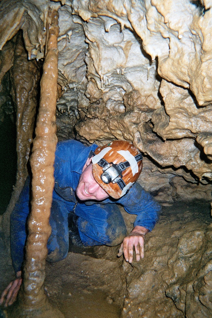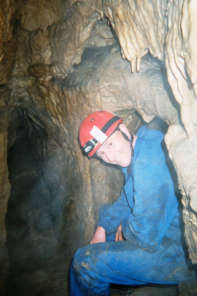 In der Nordhalle stiegen wir zu den Wießen Spalten auf, durchquerten einen weiteren Schluf und erreichten die zum Teil unter Wasser stehenden Karfreitagsspalten. Auch der Zugang zu Spökerhalle war "etwas" feucht, es stand ca 5 cm Wasser im Schluf. Der Anblick der Spaghetti-Tropfsteine entschädigte aber.
