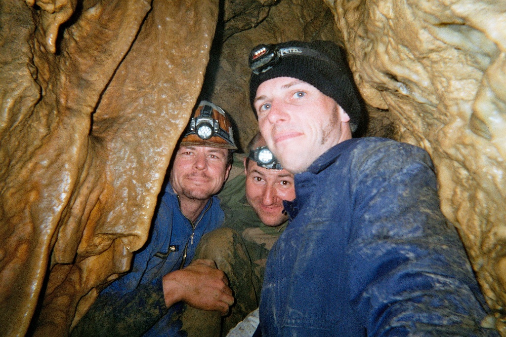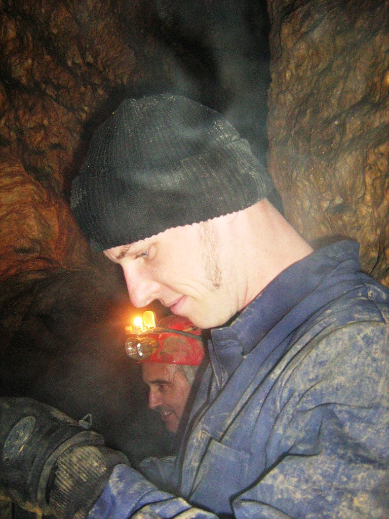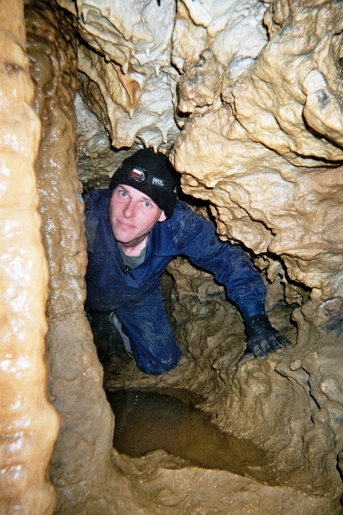 Nach den Vorbereitungen, das hieß Umziehen in Klamotten, die dreckig und nass werden dürfen und möglichst verschleißfest sind, stiegen wir in die Höhle ein. Der Eingang ist noch ganz angenehm, wird er doch zeitweise als Bierkeller der zugehörigen Gastwirtschaft benutzt. Nach der Eingangshalle verzweigt sich dann die Höhle in drei große Teile. Wir starteten mit der Julius-Rühm-Klamm, für die Zeit noch mit ungewöhnlich viel Wasser.