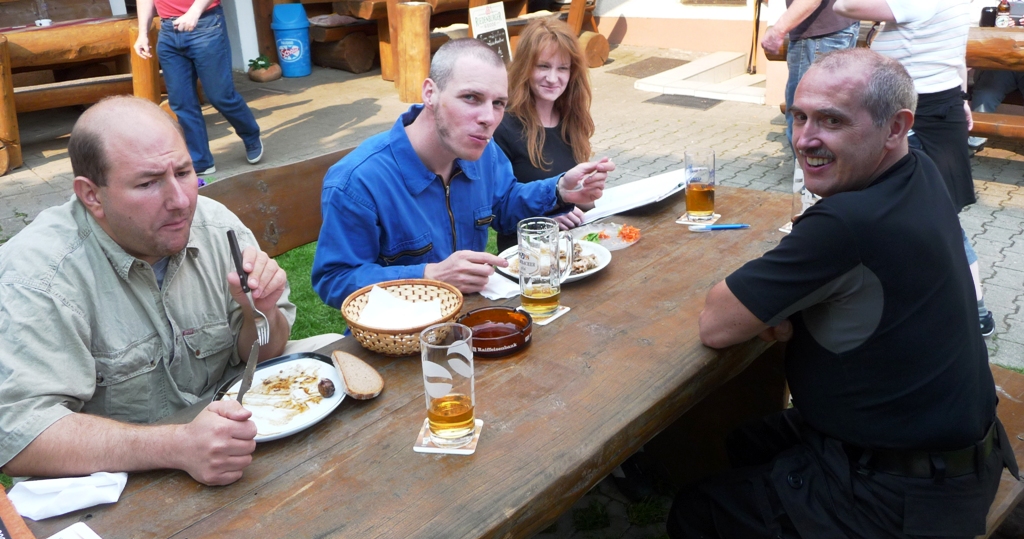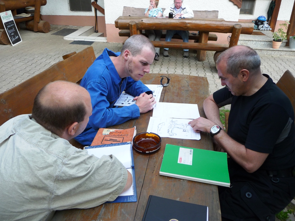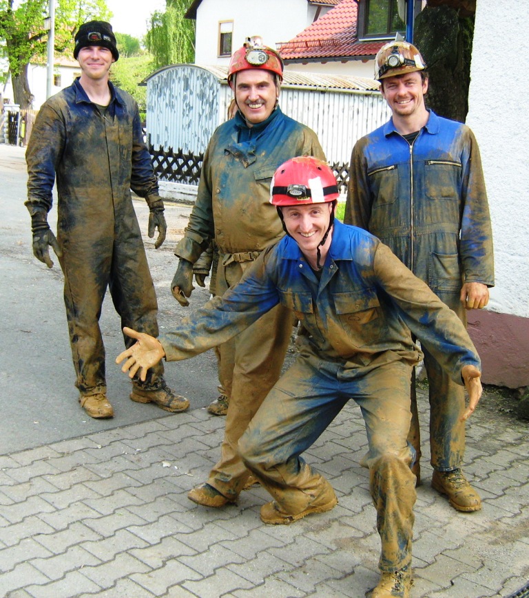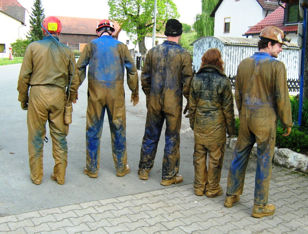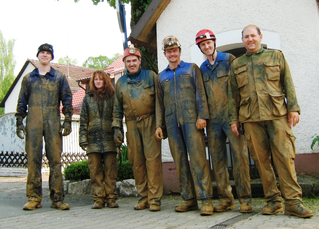 Verdreckt, nass und schon mit Ansätzen vom Muskelkader erreichten wir wieder das Tageslicht. Nach den notwendigen Säuberungsaktionen im nahe gelegen Flemmbach war die Stärkung in der Gastwirtschaft ein muss.