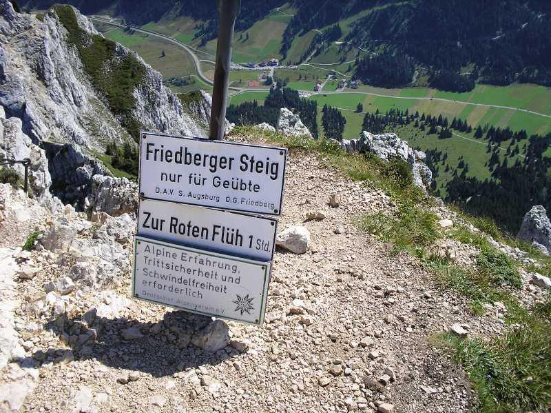 Als Ziel standen der Friedberger Klettersteig (kurzer Klettersteig, aber lohnend), der Aufstieg auf die Rote Flüh sowie die Große Schlicke auf dem Programm. Von der Roten Flüh hat man einen herrlichen Ausblick auf den Alpenhauptkamm und von der Großen Schlicke eine ausgezeichnete Aussicht auf die Schlösser rings um Füssen.