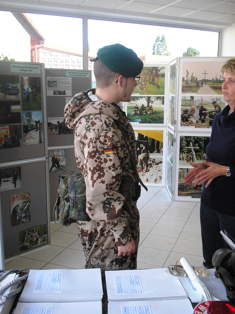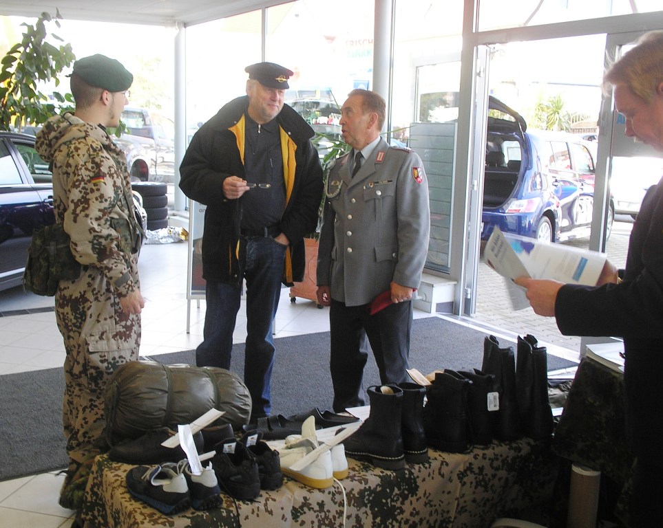 Einen Überblick über die Ausstattung eines Soldaten, Vorführung von verschiedenen Uniformen, dies stand im Mittelpunkt der regelmäß igen Aktionen der Reservisten. Hier reihten sich die Reservisten ein die Präsentationen der anderen Verbände und Vereine im Osten Nürnbergs. Bei dem schönen sonntäglichen Wetter ließen es sich viele Besucher nicht nehmen, durch die Stände zu bummeln und das Gespräch zu suchen.