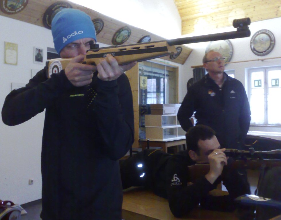 Bei den Skiwettkämpfen ist der sichere Schuss nach Belastung ein wesentliches Wettkampfelement, sei es beim Biathlon oder bei der Skipatrouille. Dank der Vermittlung des Kameraden Michael Kettl konnten die Reservisten am Samstag bei der Schützengesellschaft Tell Uttenreuth ein Schießtraining absolvieren. Zwar lag noch keine Schnee, die Belastung wurde durch Läufe dazwischen "simuliert".