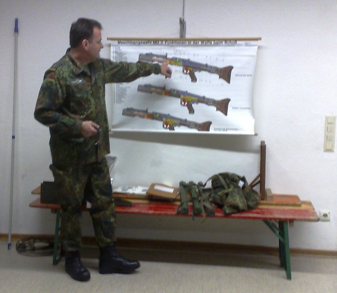 Die Kenntnisse über den sicheren Umgang mit den Bundeswehrwaffen ist Voraussetzung für ein Schießen. Regelmäßig wird deshalb eine Waffenausbildung am Maschinengewehr, Pistole und Gewehr G 36 durchgeführt. Die Reservisten der RK Nürnberg waren ihr mit Ausbildern und jungen Teilnehmern dabei.