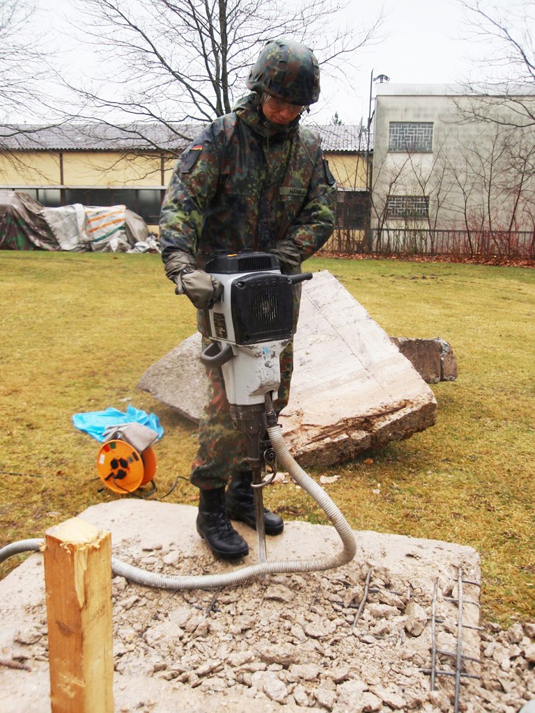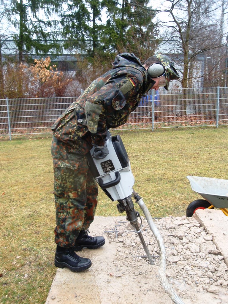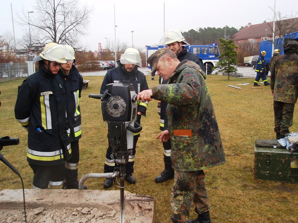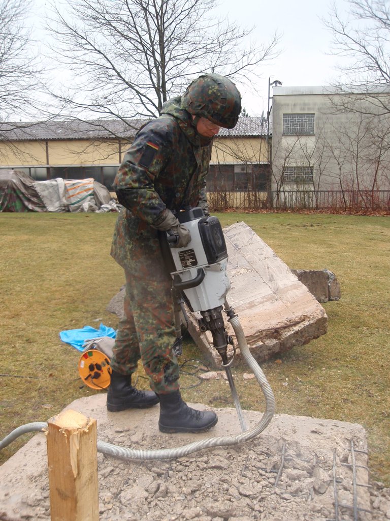 Der Reservistenverband stellte auf seiner Ausbildungsstation die Einsatzmöglichkeiten der Bohr- und Aufbrechhämmer vor, die bei den Pioniereinheiten der Bundeswehr eingesetzt werden und zur Grundausstattung aller Fahrzeuge der Bundeswehrpioniere gehören. Sowohl elektrisch wie auch &qout;stromunabhängig" und mit einer großen Auswahl an Bohrköpfen können die Bohr- und Aufbrechhämmer bei der Rettung verschütteter Personen im Katastrophenfall wie etwa nach Erdbeben bei Häusereinstürzen eingesetzt werden, da sie auch dicke Betonwände durchbohren können.