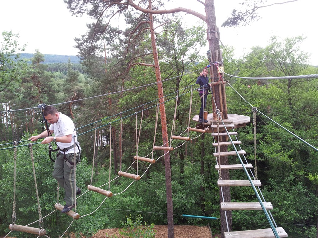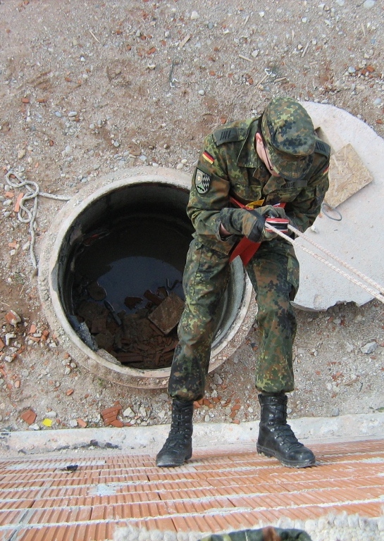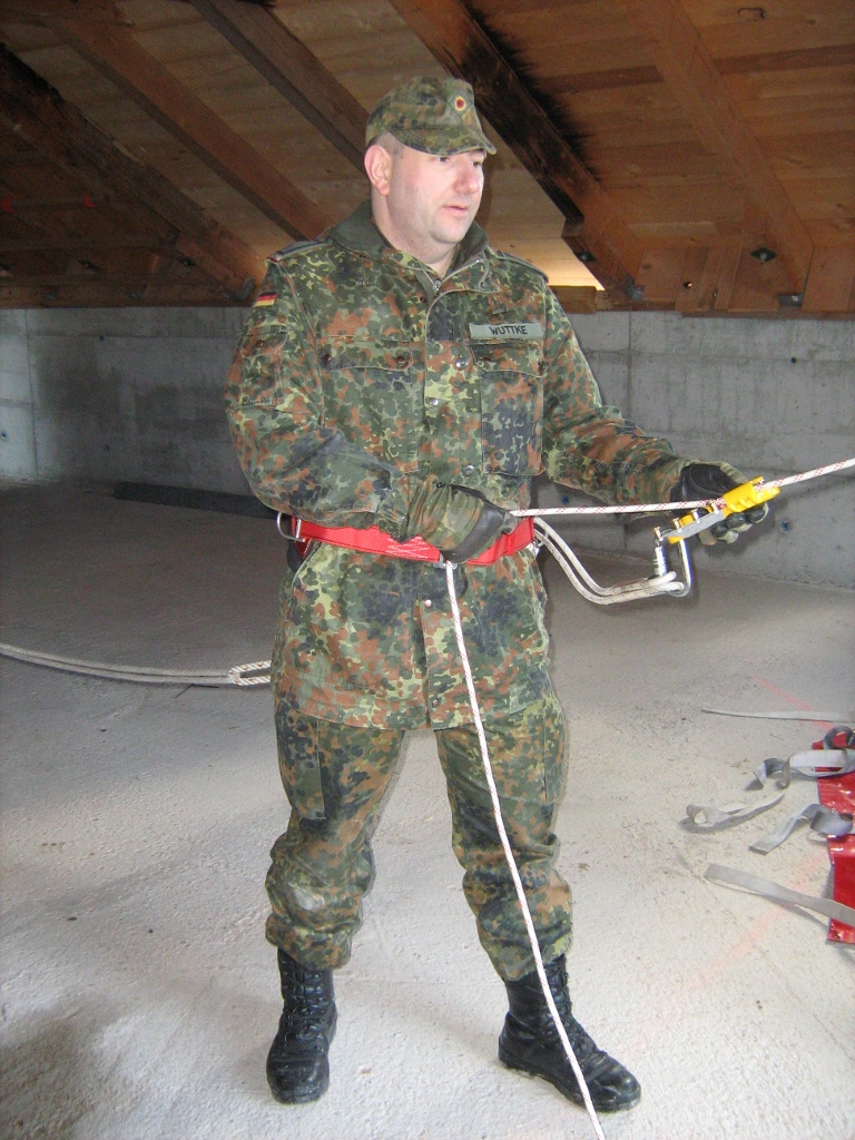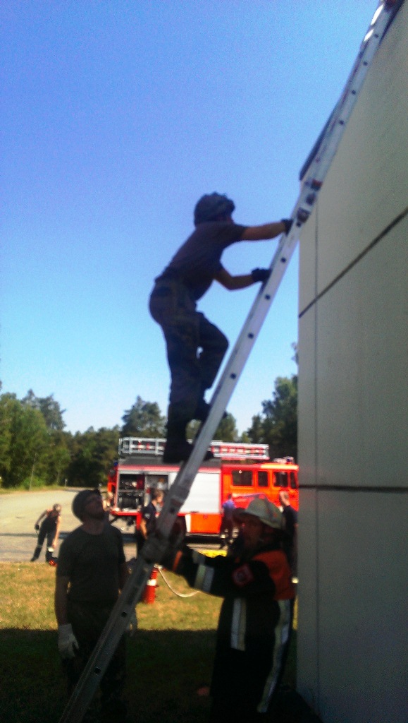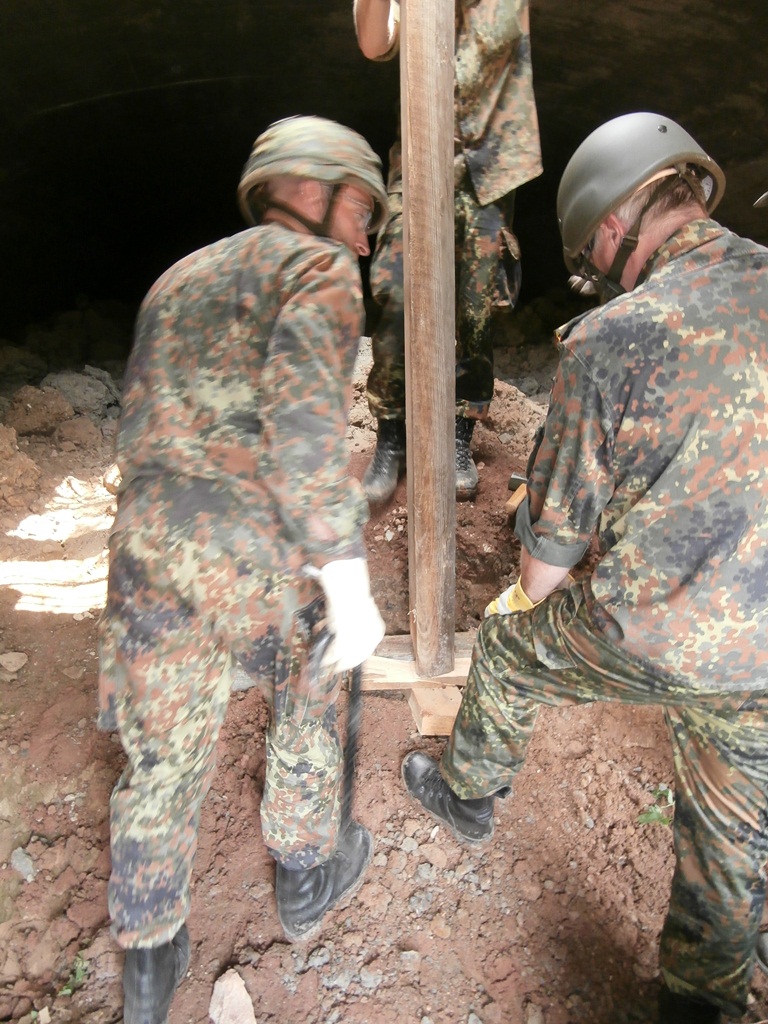 Der Wettkampf startete mit einer Tagphase, in welcher die Soldaten auf die Lage für die bevorstehende Nachtübung vorbereitet werden sollten. 20 Stationen waren im 15-minütigen Takt zu durchlaufen, oftmals viel zu wenig Zeit um alle Aufgabenstellungen an einer Station zu bewältigen. Für uns ging es los mit "Beobachten aus einer Scharfschützenstellung heraus sowie Geländespinne erstellen". Dann folgten verschiedene Schießaufgaben und der doppelte Seilsteg. Am einfachen Seilsteg musste das Wiederaufsteigen nach einem simulierten Absturz gezeigt werden, gar nicht so leicht, aber immerhin zwei aus der Mannschaft haben das geschafft. Bei der improvisierten Hindernisbahn folgte dann der Handgranatenzielwurf. Weiter ging's mit Erkennen von Uniformen und Flaggen, Checkpoints, AGSHP und Feuerlöschen. Letzte Aufgabe war dann die Inbetriebnahme eines Funkgeräts und Absetzen eines verschleierten Funkspruchs.