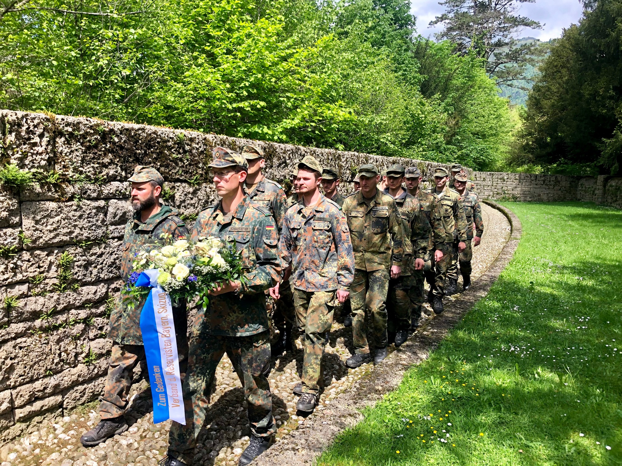Bei einer Kranzniederlegung am Soldatenfriedhof der deutschen Kriegsgräberstätte Tolmein wurde den gefallenen Kameraden gedacht.