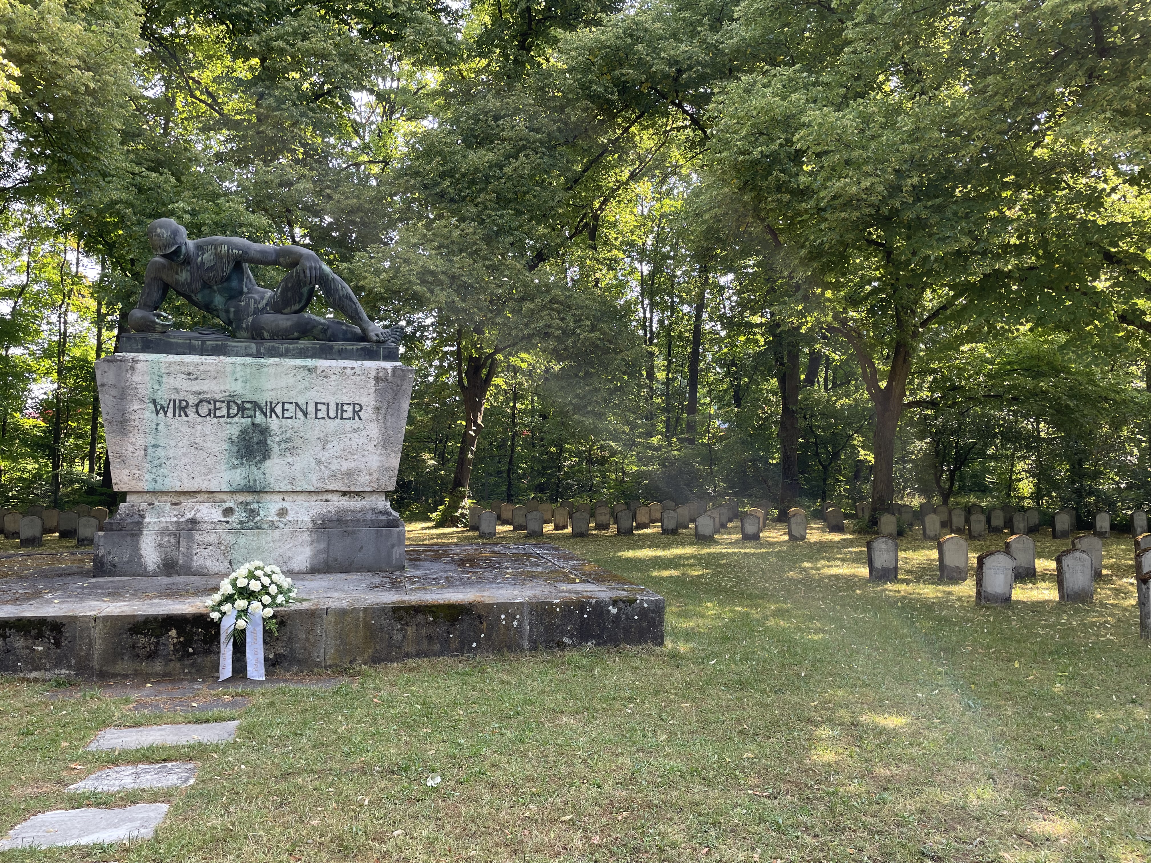 Am 01.07.2023 veranstaltete die RK Nürnberg in Zusammenarbeit mit dem "Volksbund Deutsche Kriegsgräberfürsorge" und der Friedhofsverwaltung Nürnberg eine Reinigung der Grabplatten des Gräberfeld aus dem 1. Weltkrieg auf dem Südfriedhof in Nürnberg.