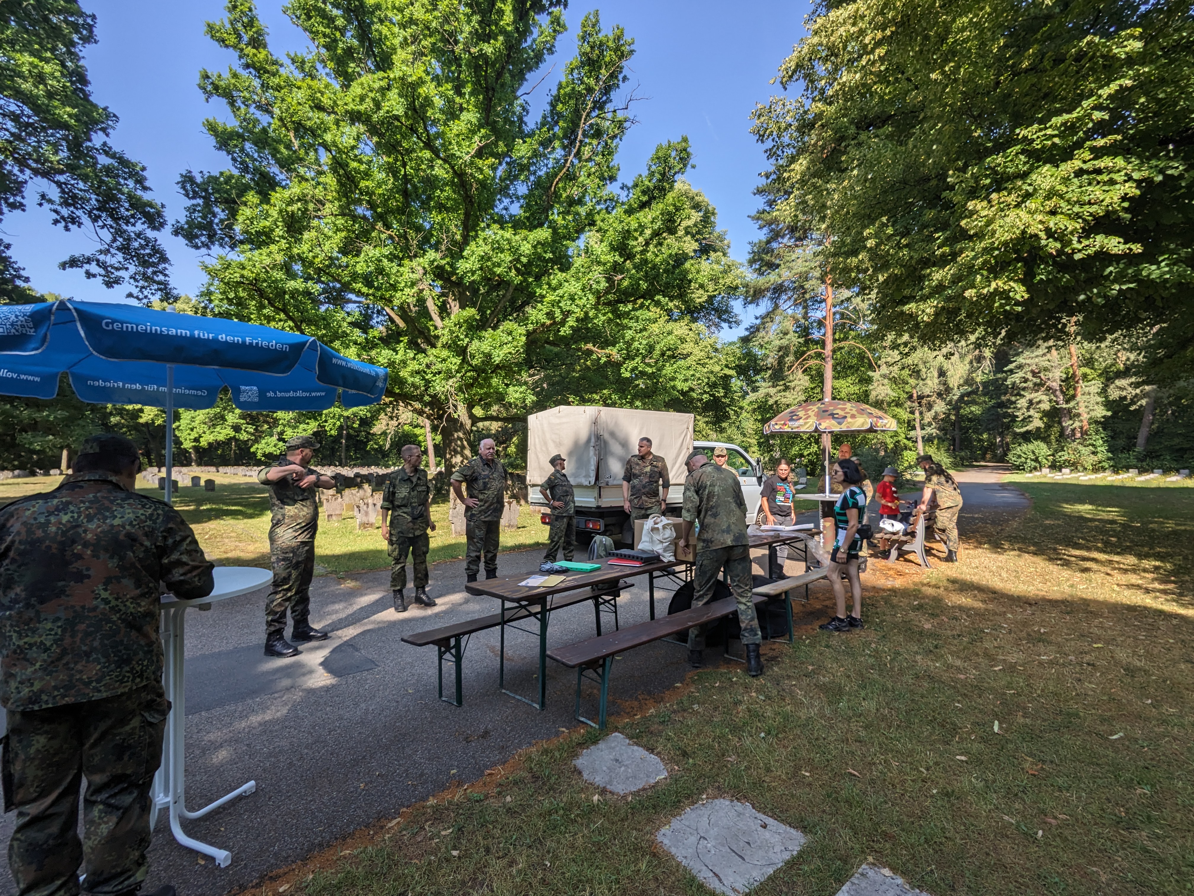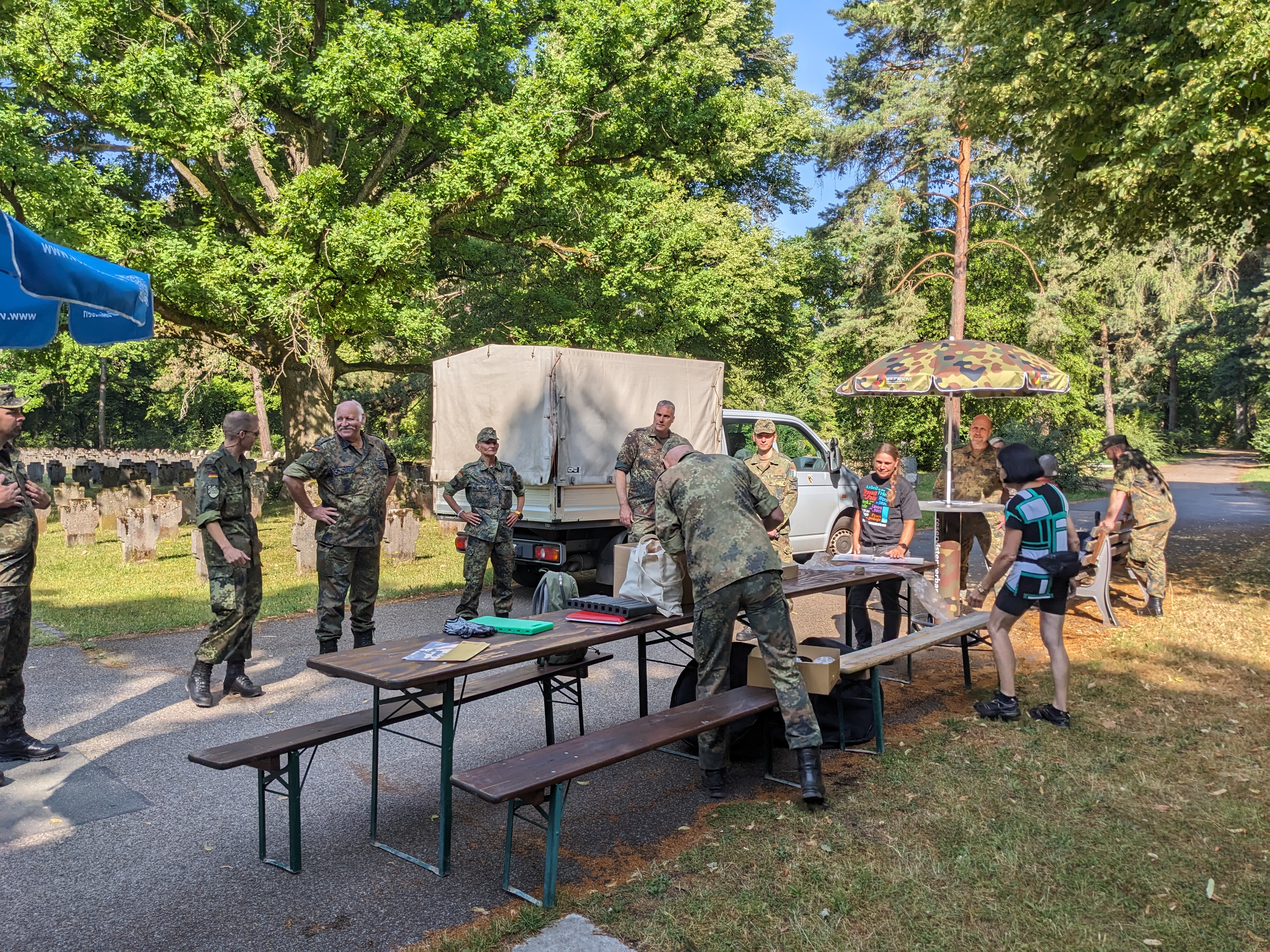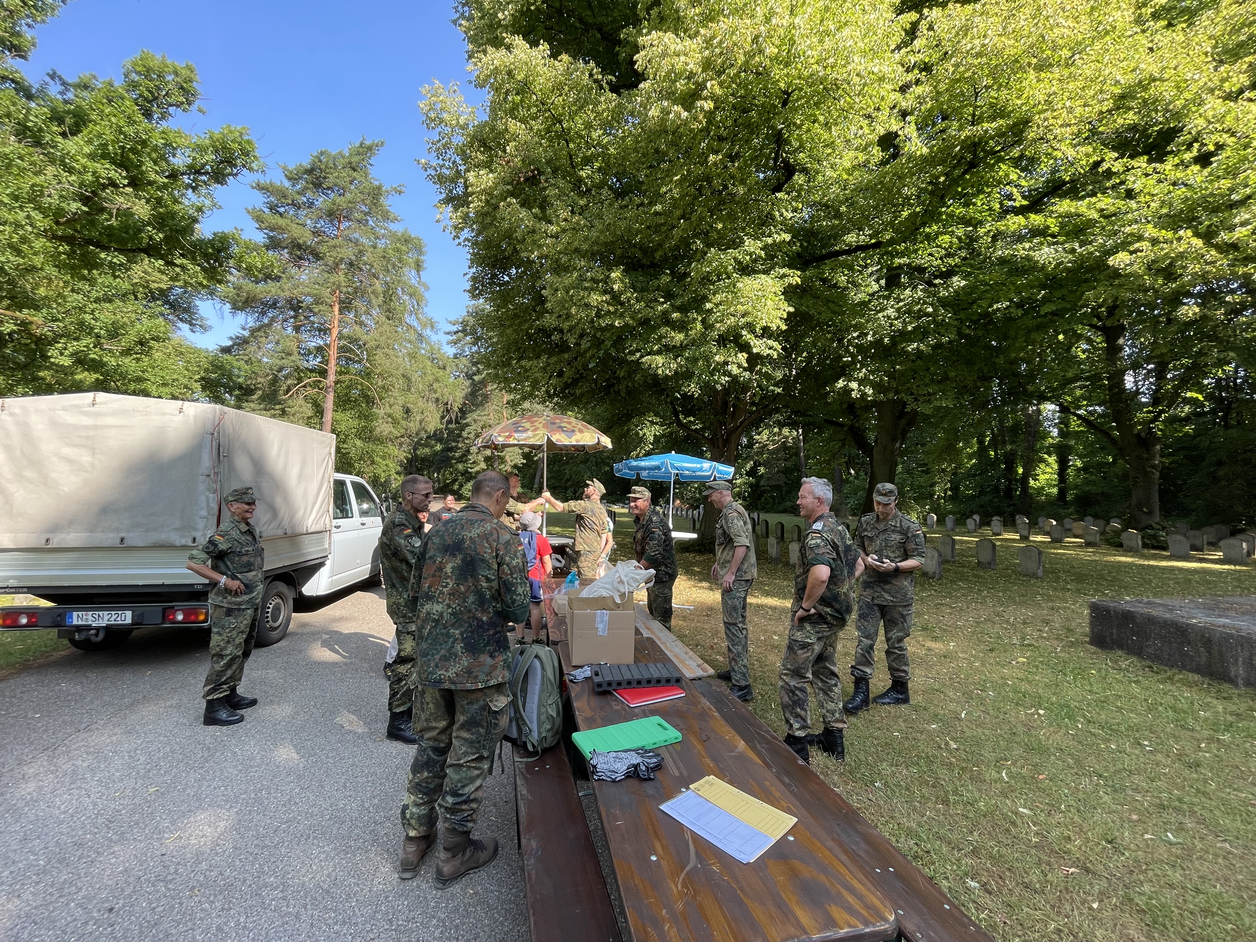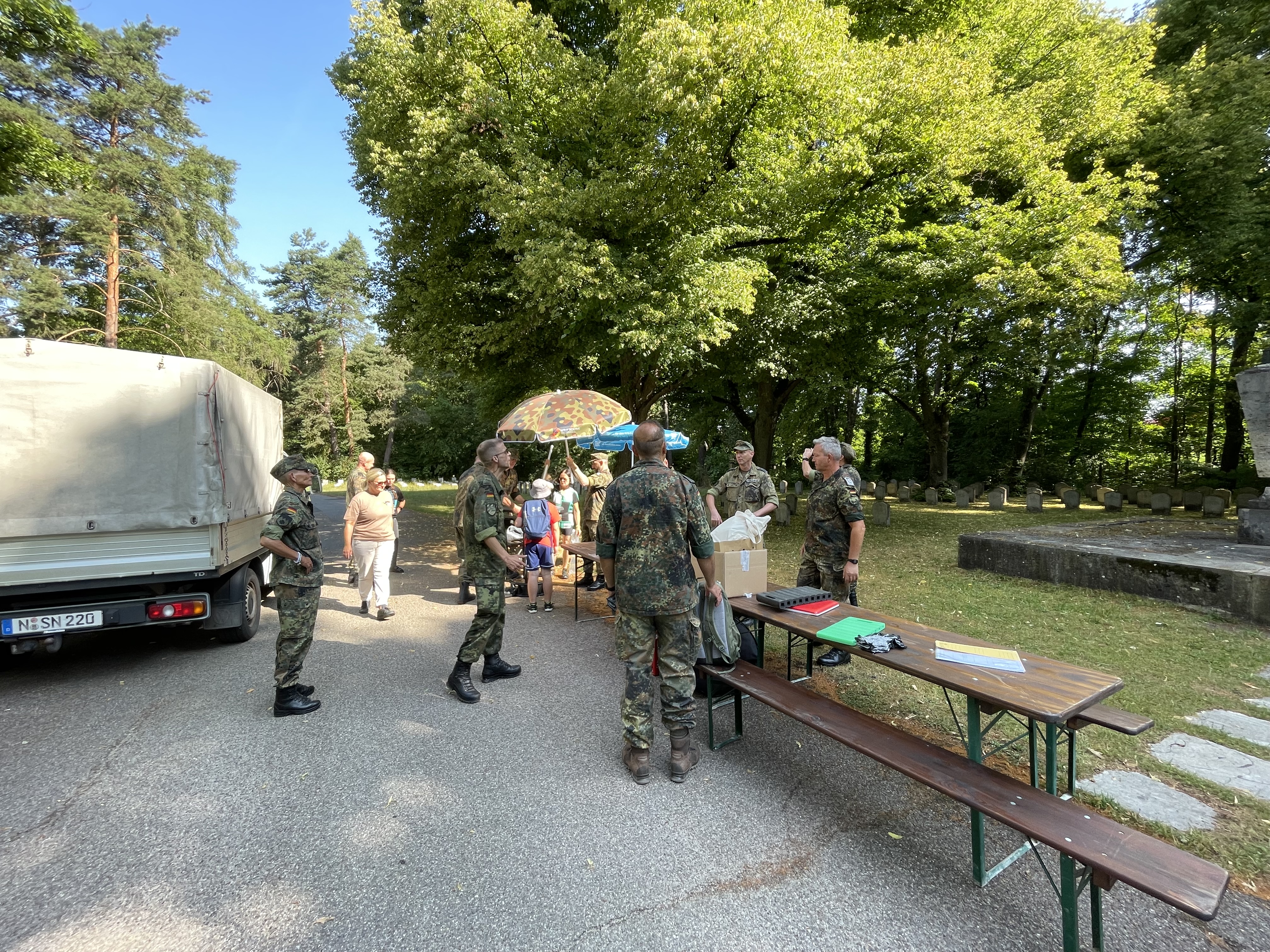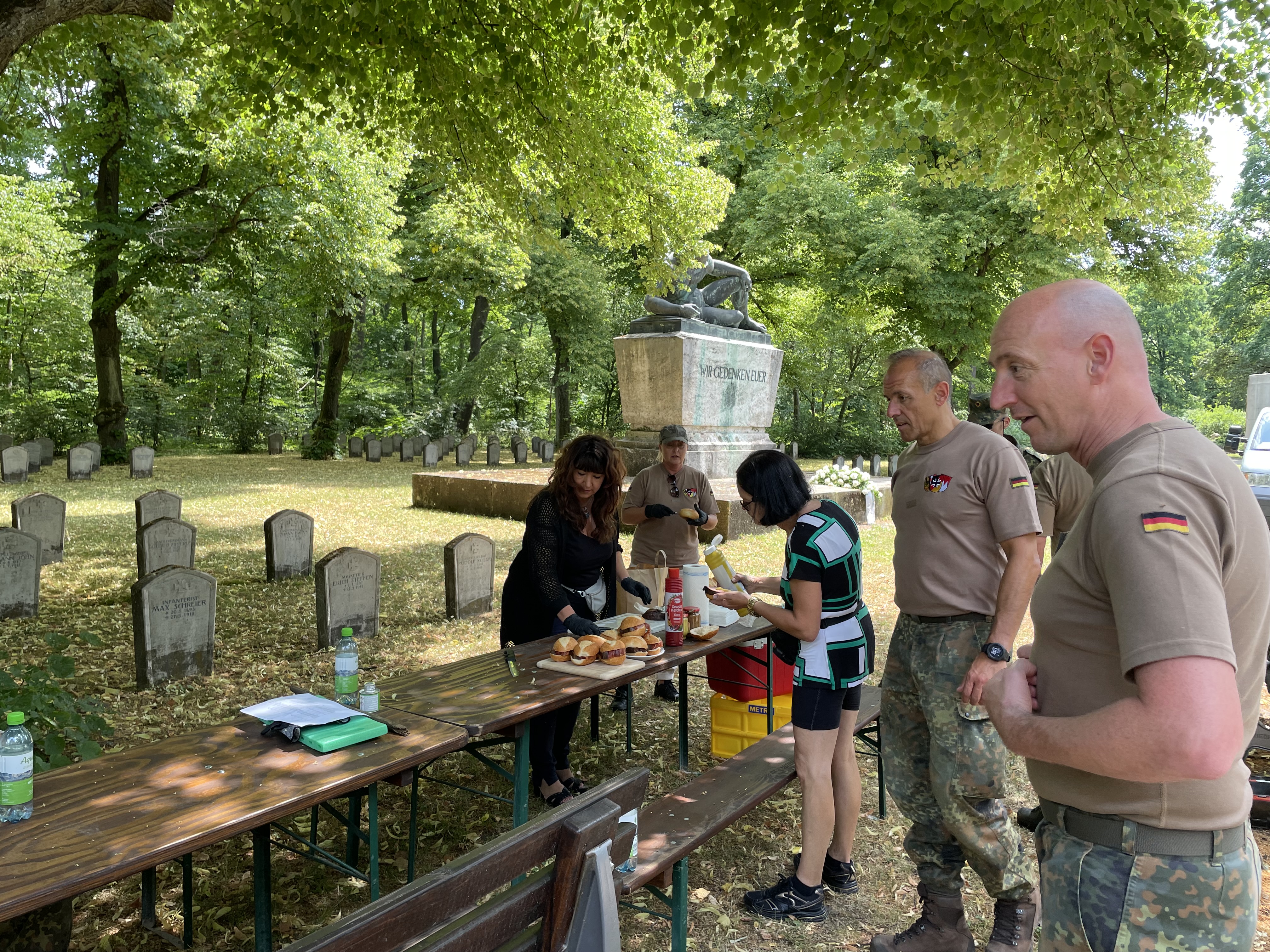 Zu Mittag wurde sich unter schattigen Bäumen mit "Leberkäsbrötchen" gestärkt. Die Veranstaltung wurde gegen 15 Uhr beendet.