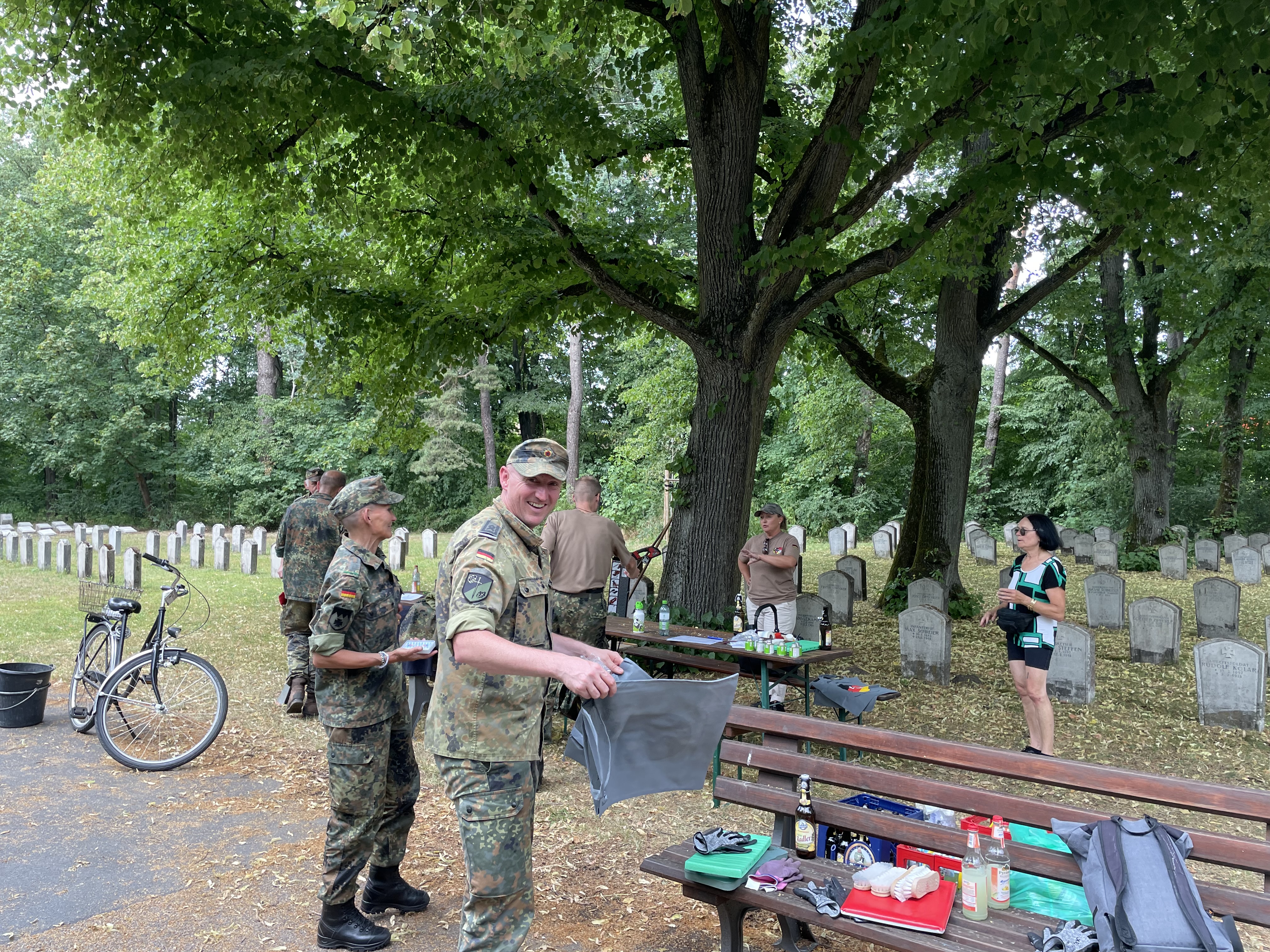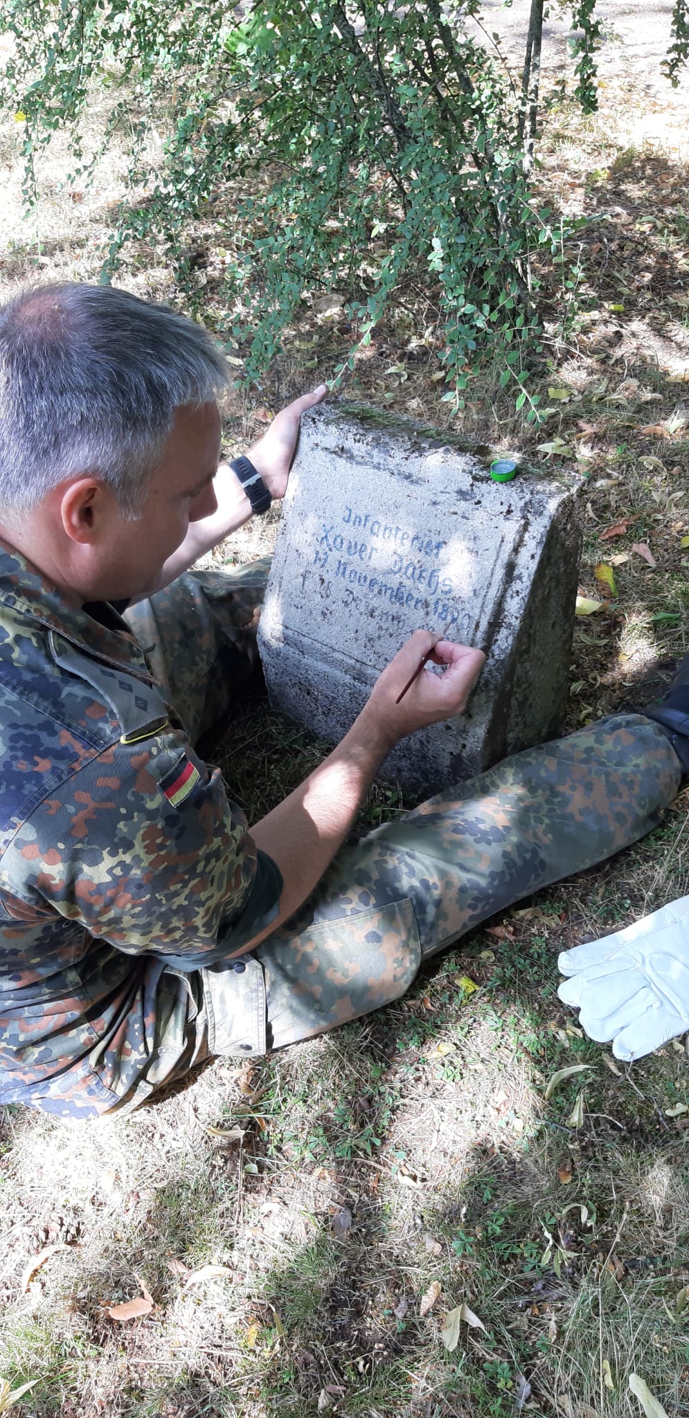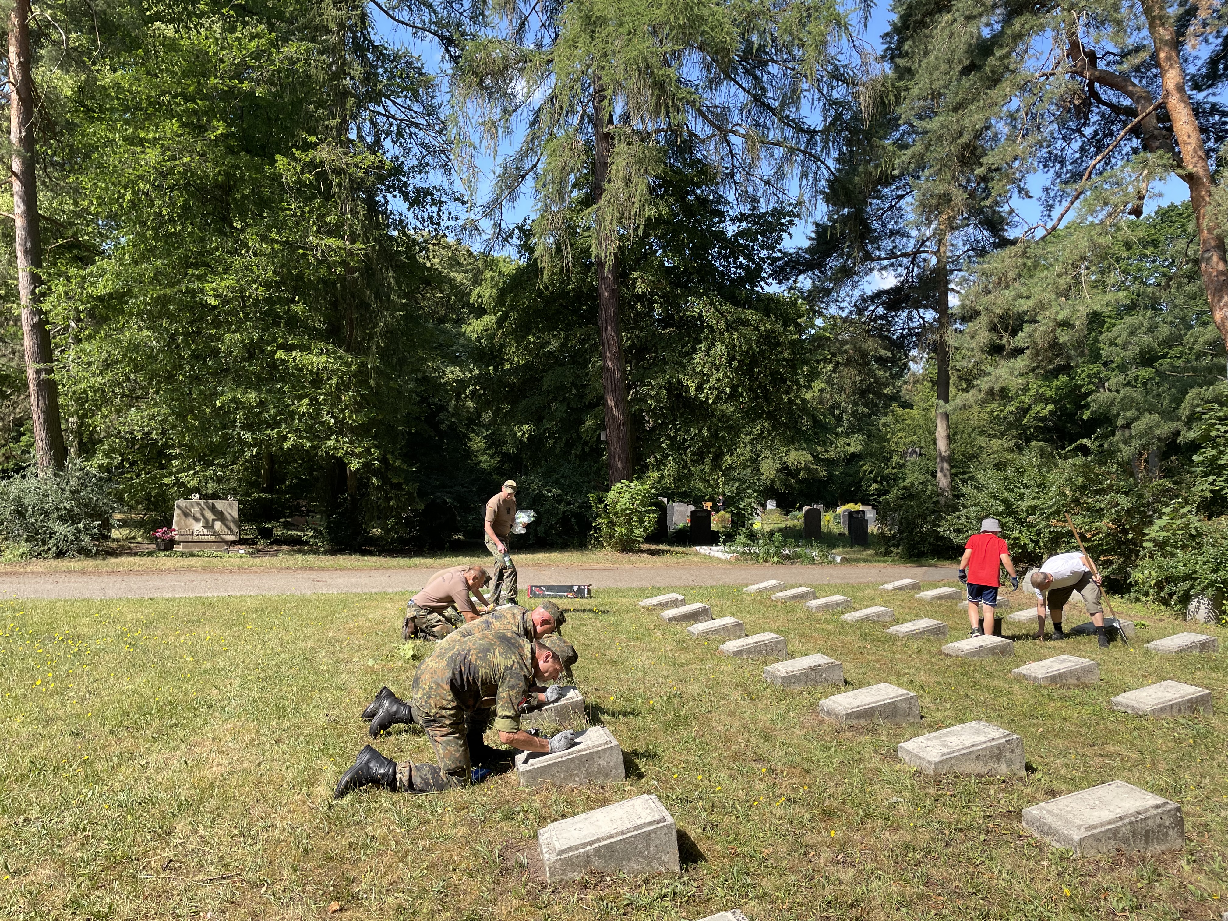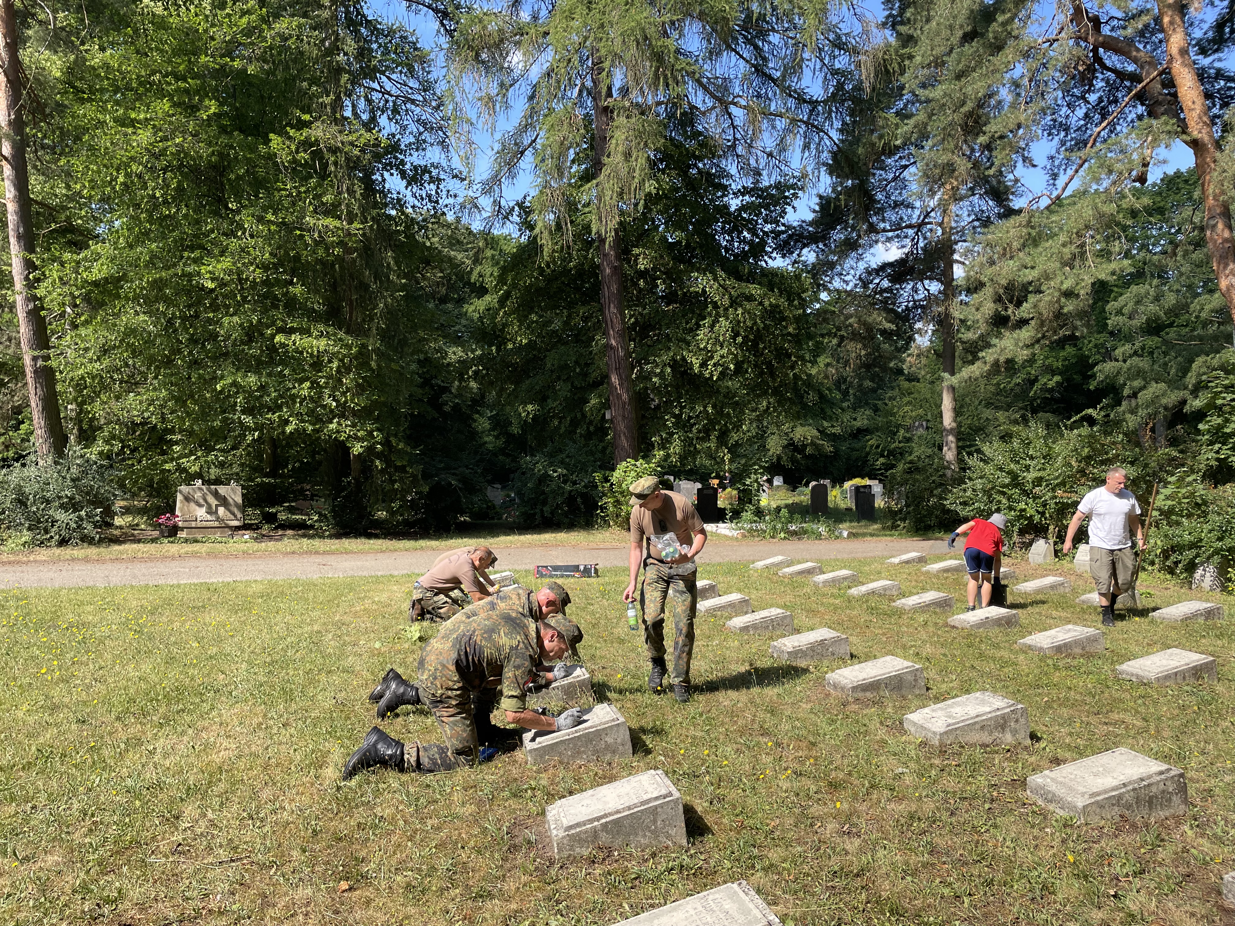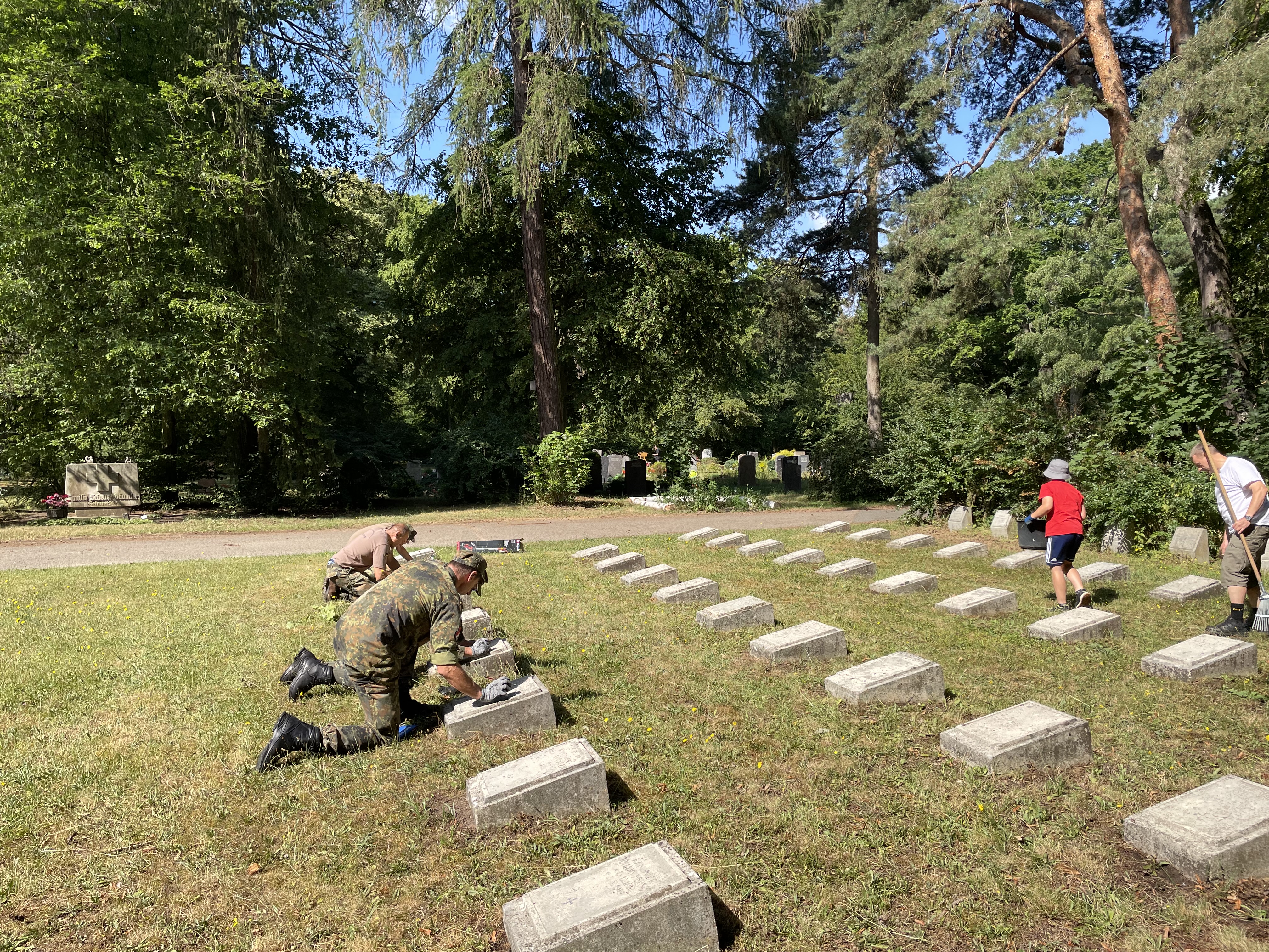 Reinigung der Grabplatten des Gräberfeld aus dem 1. Weltkrieg