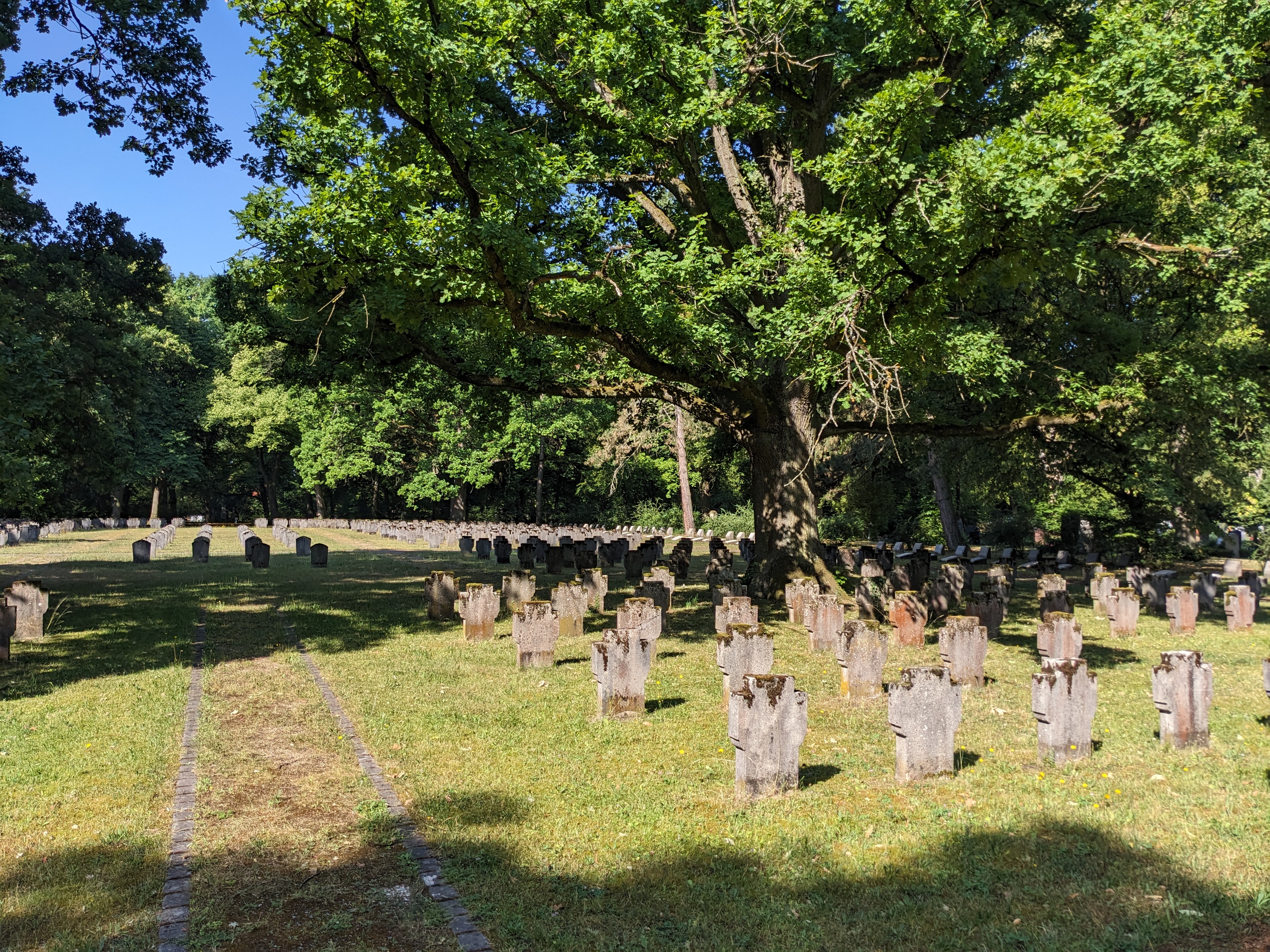Sehr hilfreich war hierbei ein Plan der Grablagen, aus dem hervorging, um welchen Soldaten es sich handelt. Bereitgestellt wurde dieser von der Friedhofsverwaltung Nürnberg Südfriedhof. Es konnten ca. 1/3 der Gräber wieder in einen guten Zustand gebracht werden.