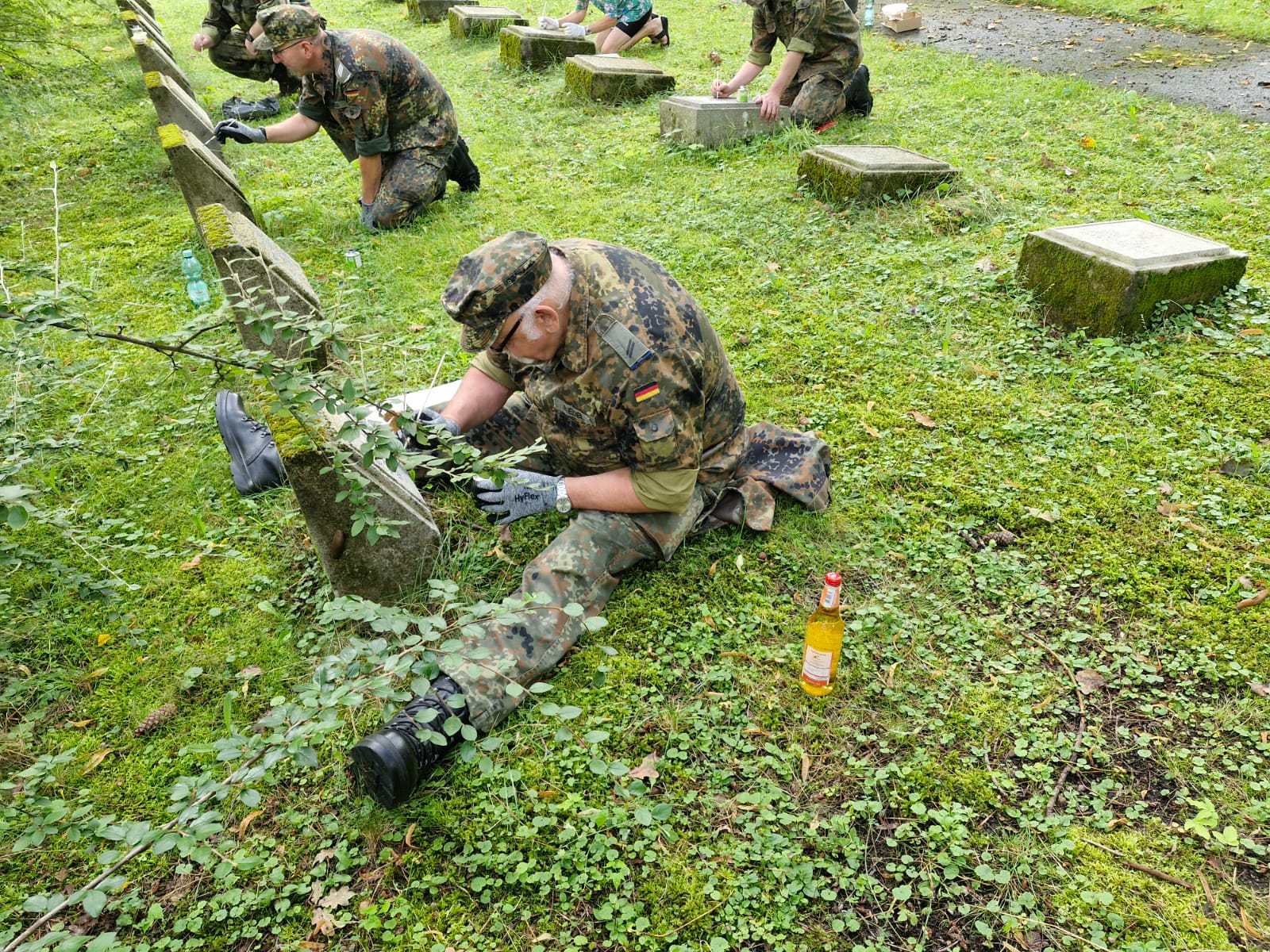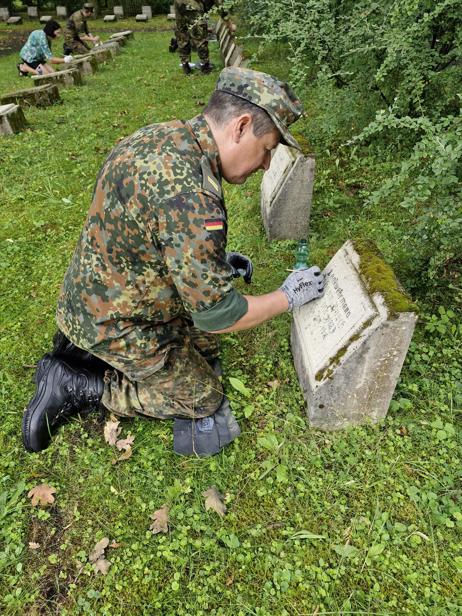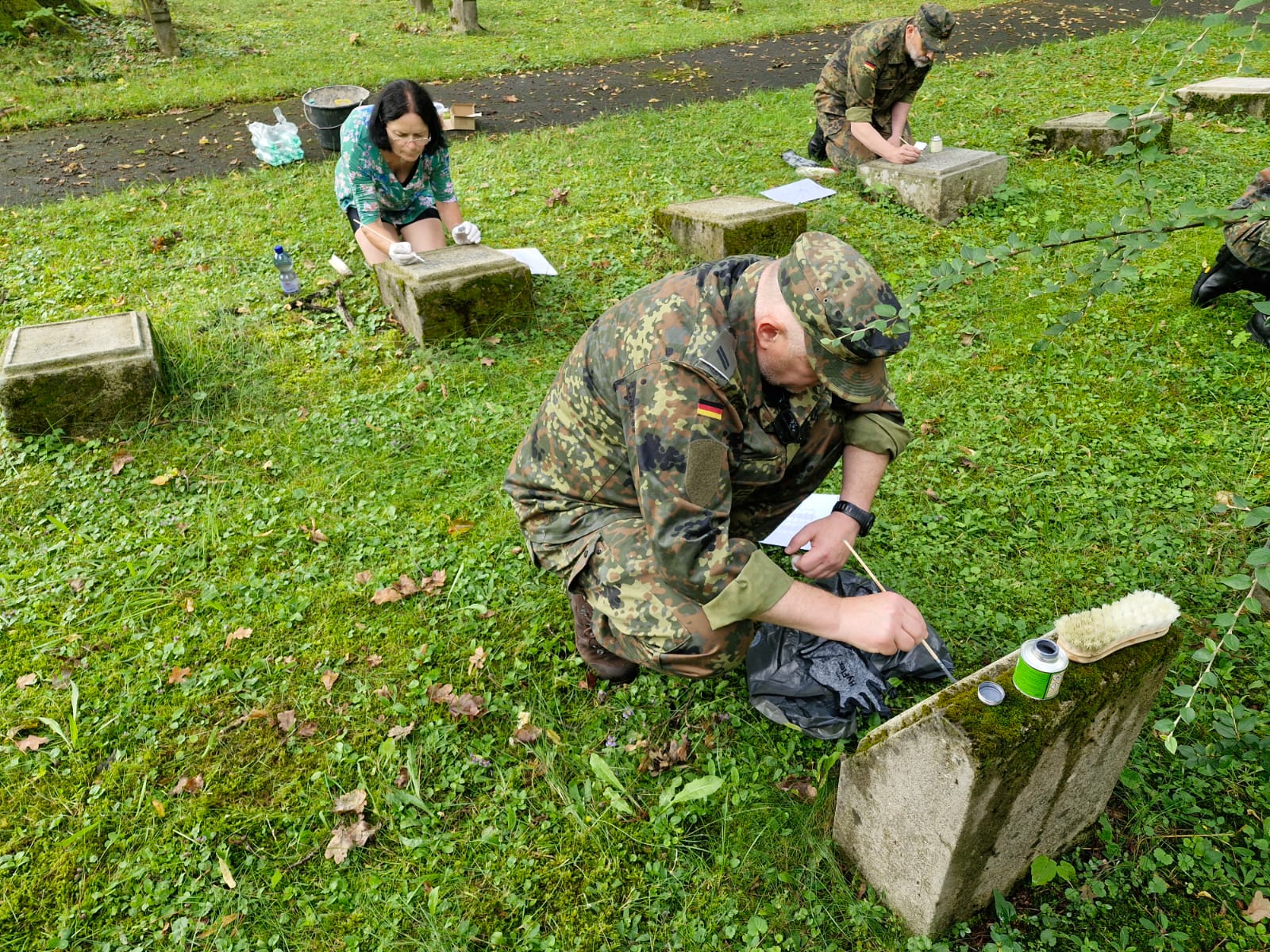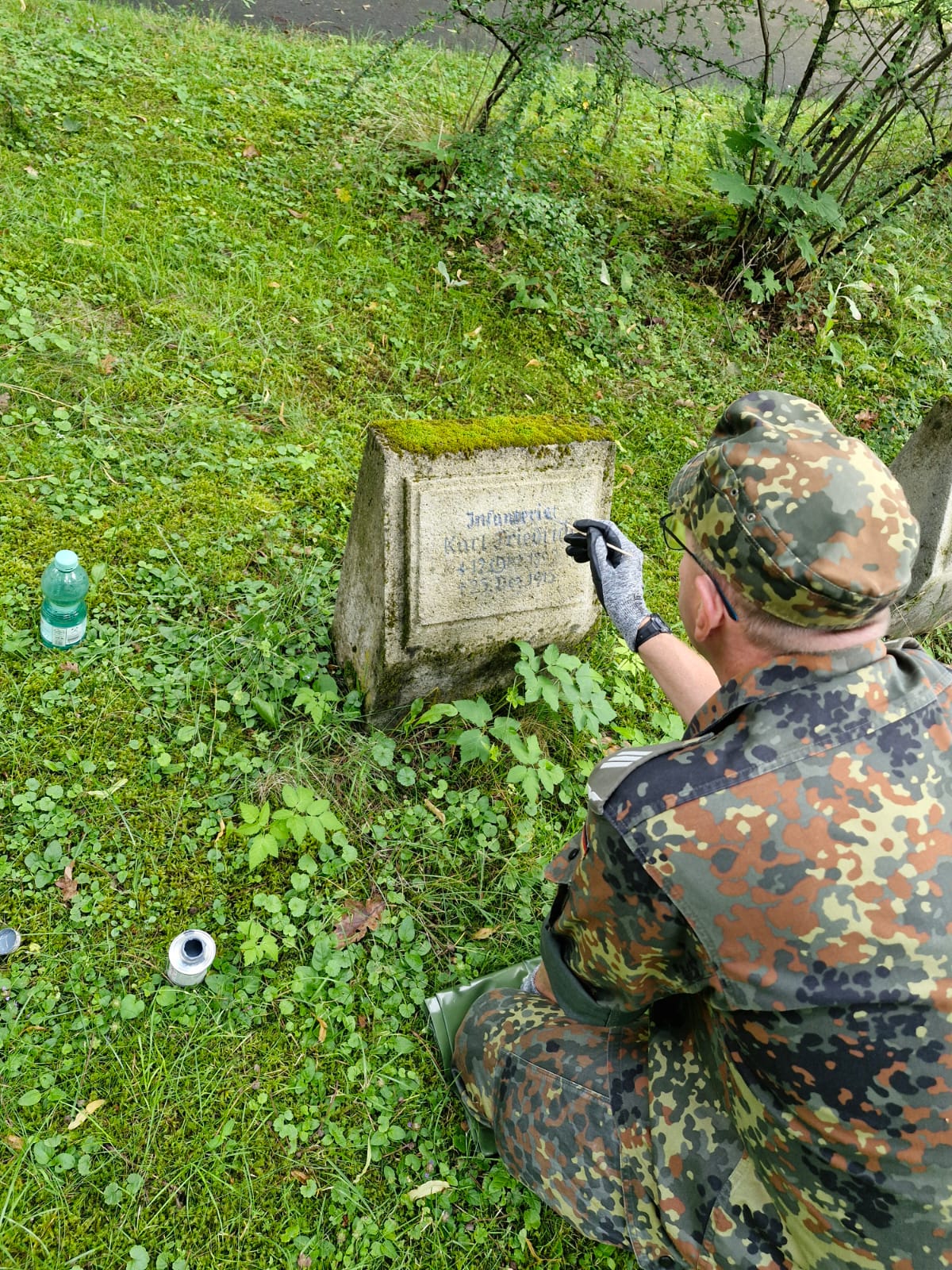 Reinigung der Grabplatten des Gräberfeld aus dem 1. Weltkrieg