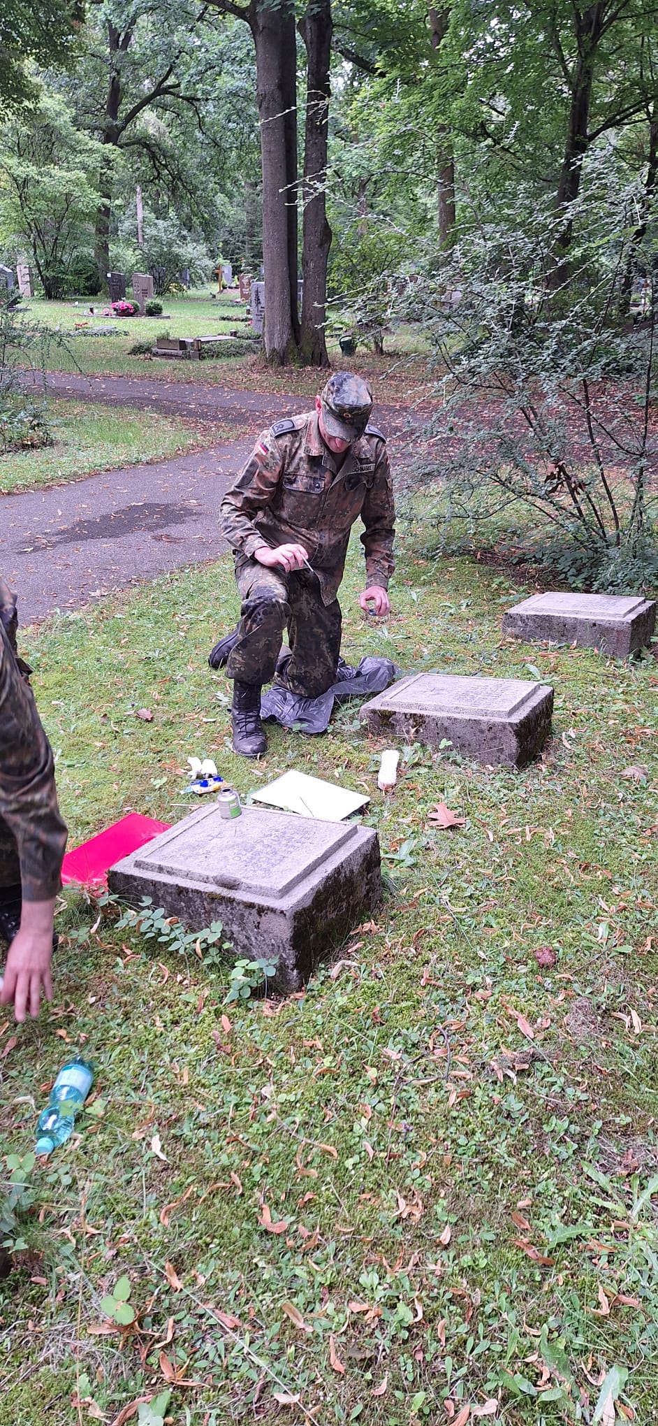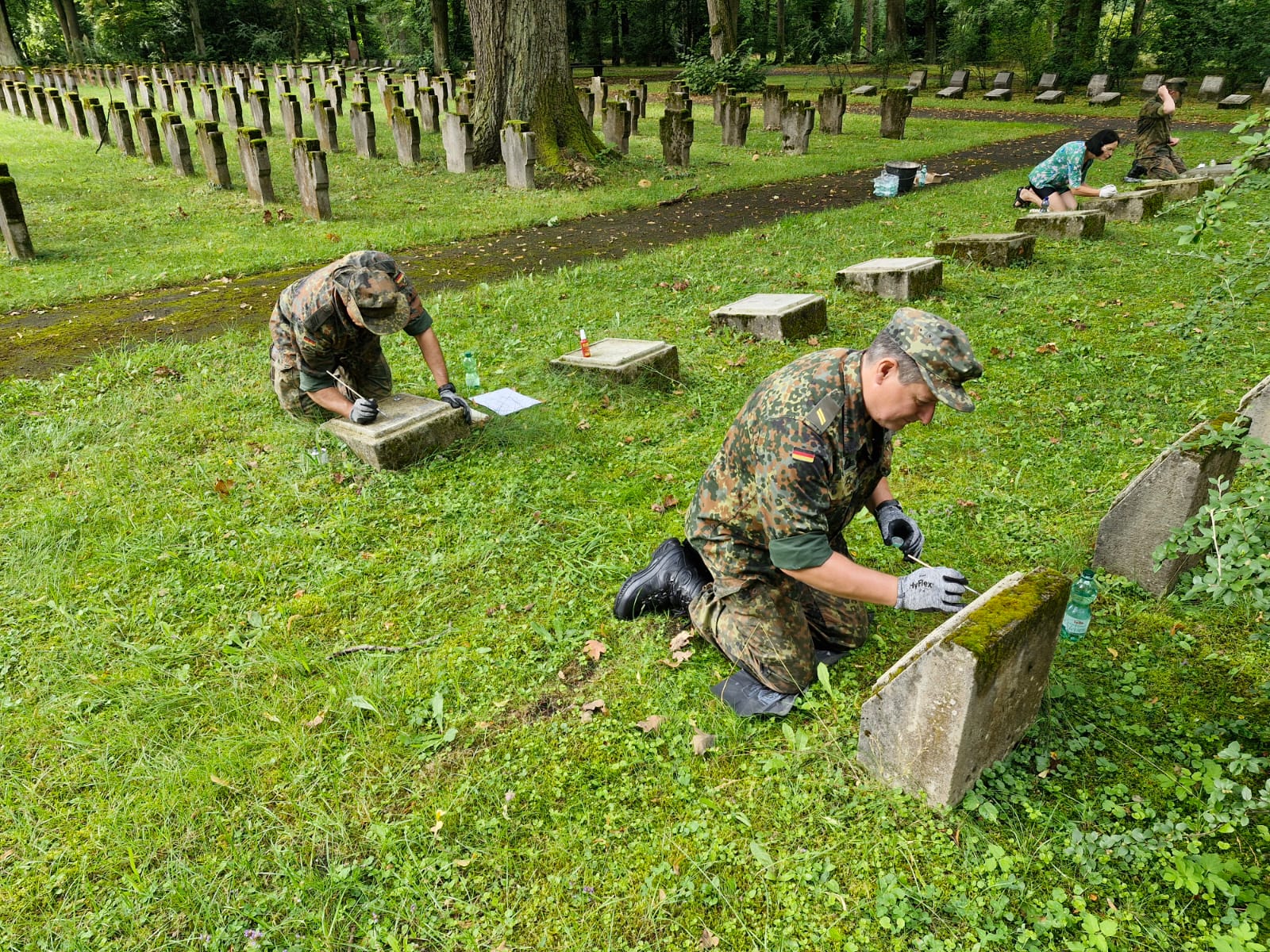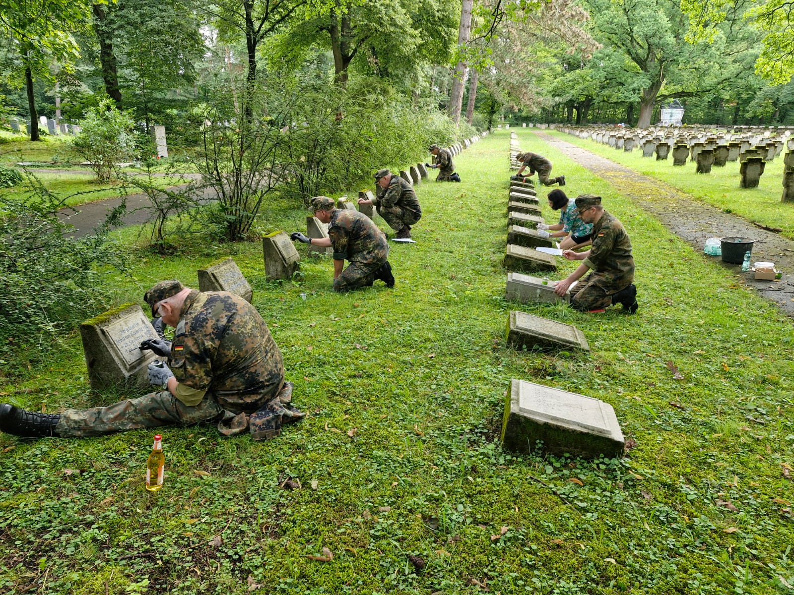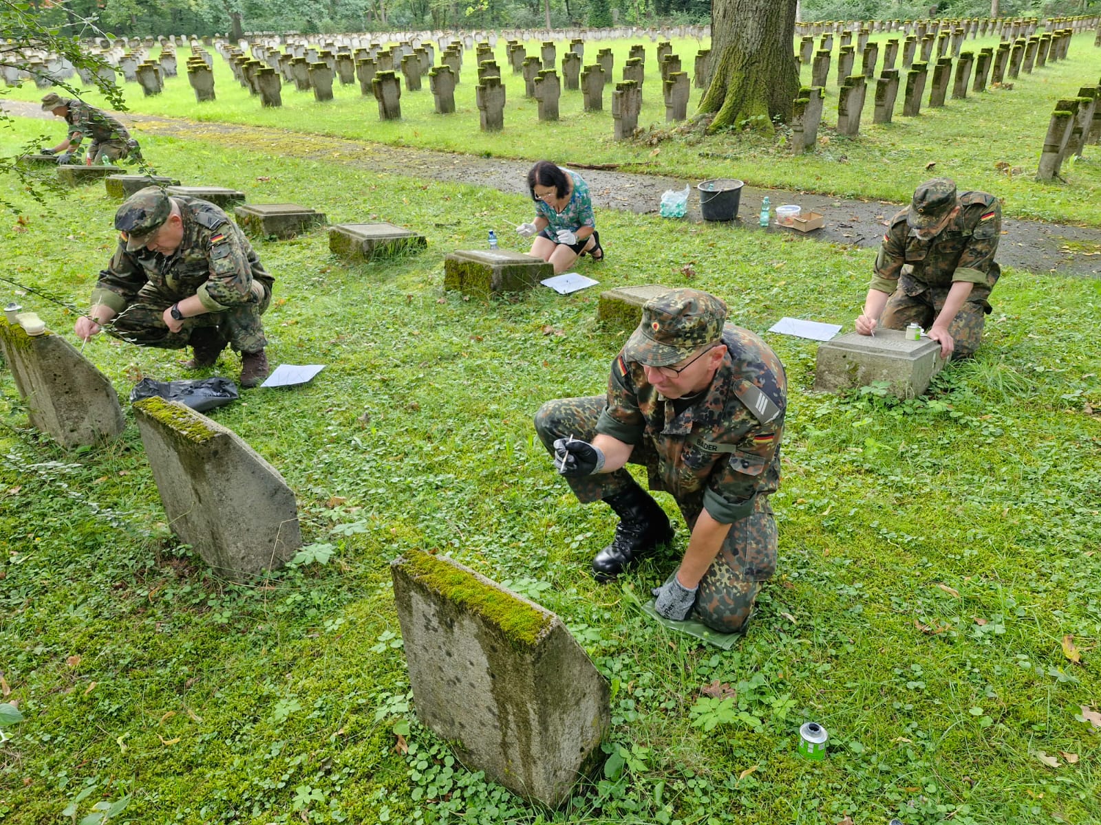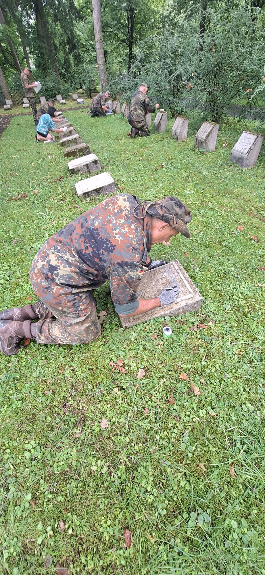 Reinigung der Grabplatten des Gräberfeld aus dem 1. Weltkrieg