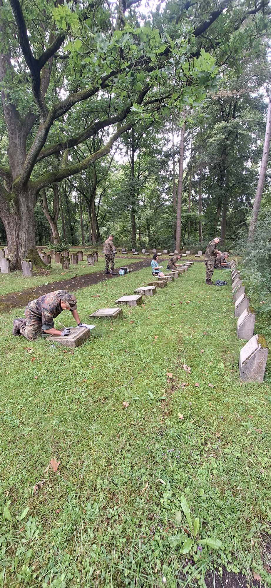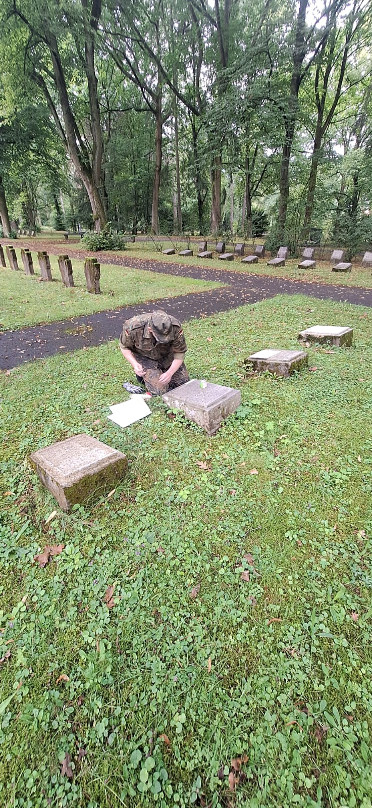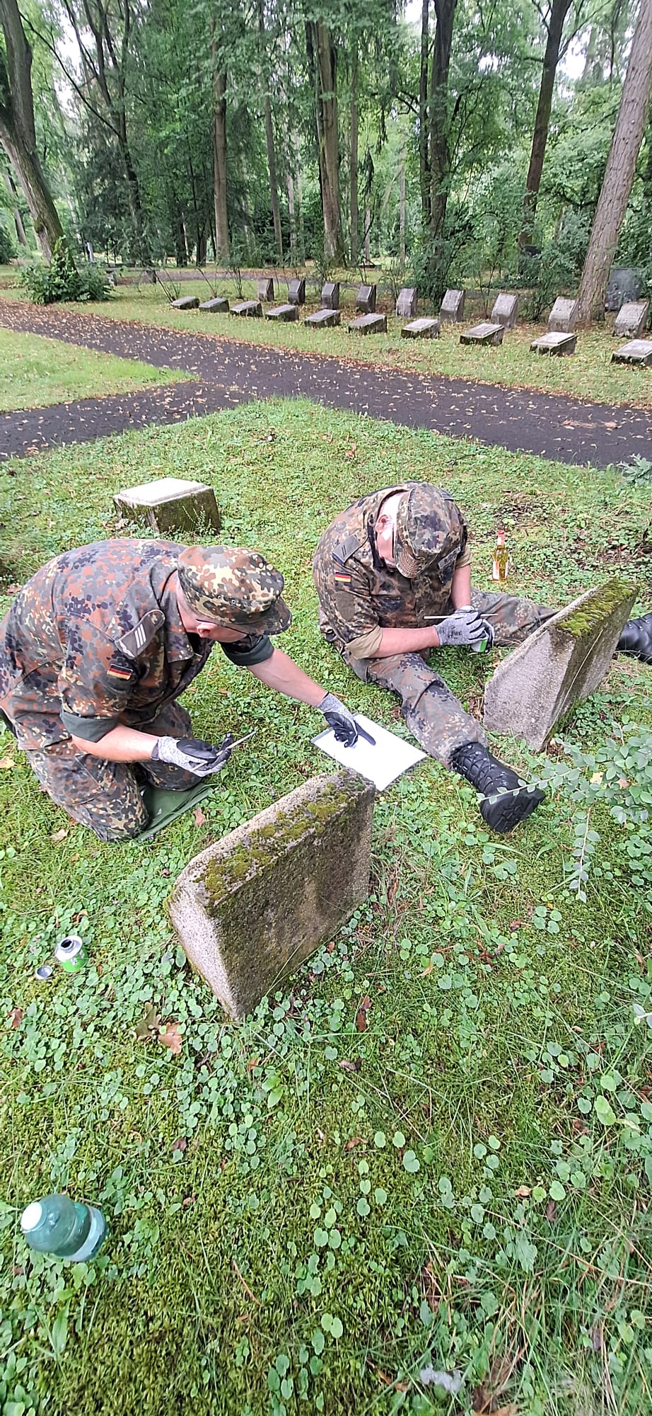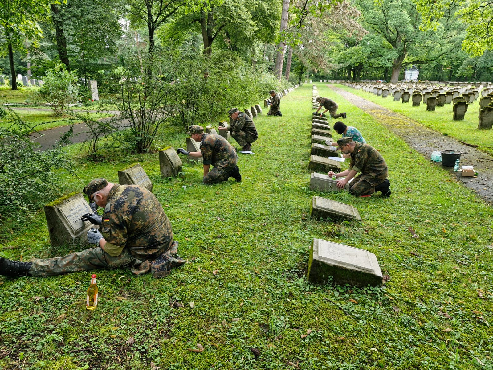 Reinigung der Grabplatten des Gräberfeld aus dem 1. Weltkrieg