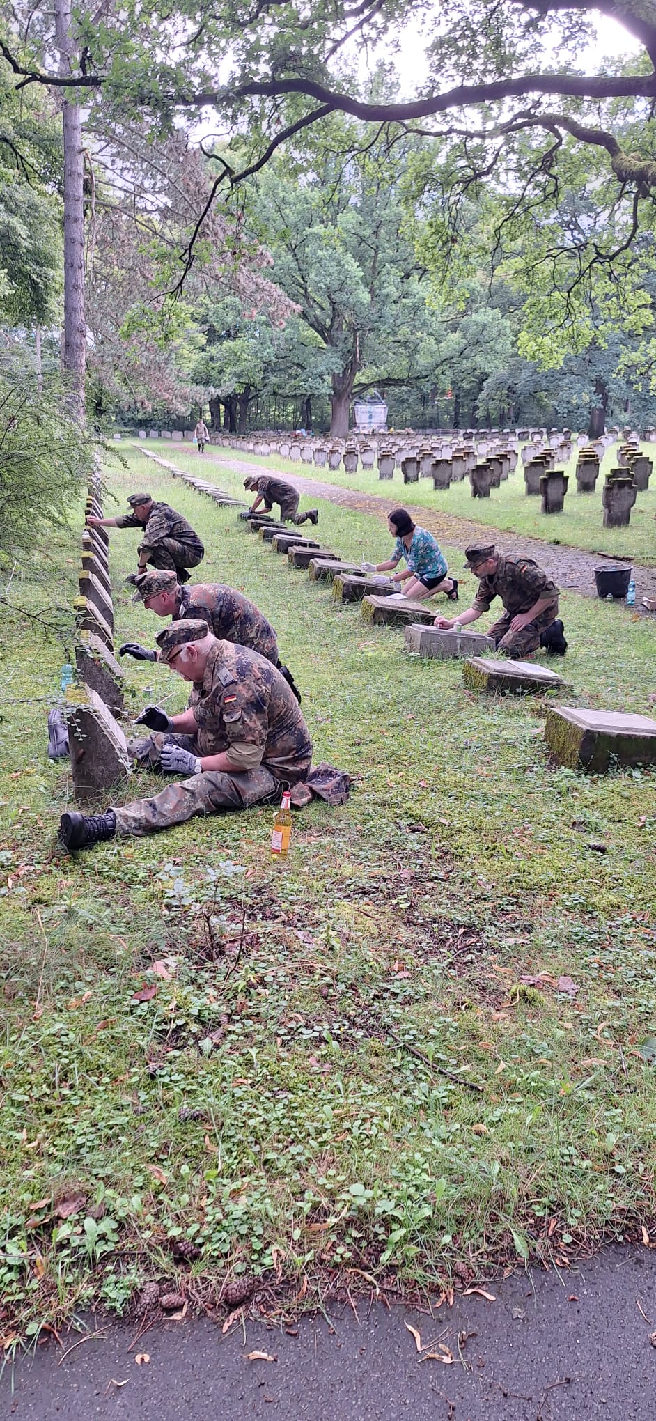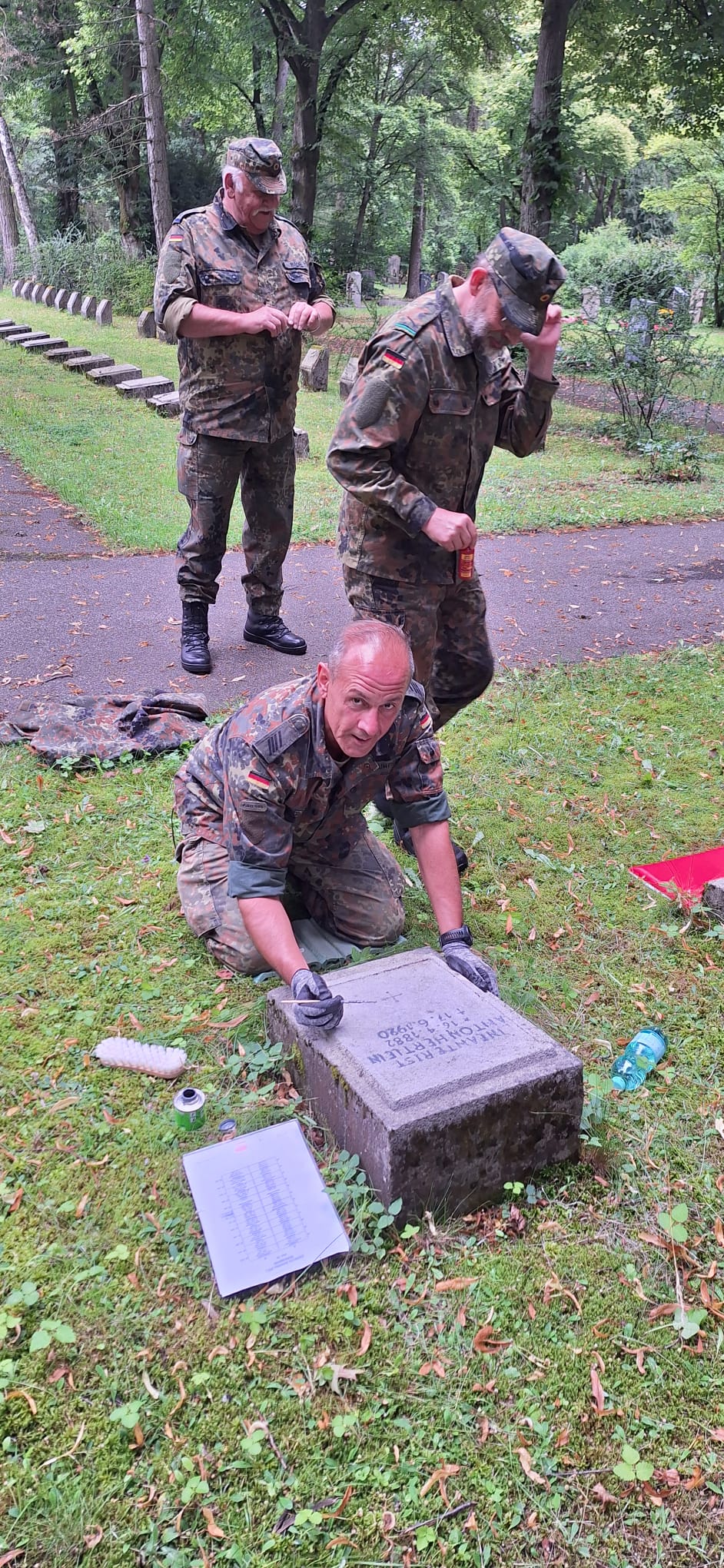 Unter der Gesamtleitung unseres Kameraden OG d.R. Thomas Ulrich führte die RK-Nürnberg am 13. Juli 2024 im Rahmen der Kriegsgräberpflege in Zusammenarbeit mit der Kriegsgräberfürsorge Mittelfranken und der Friedhofsverwaltung der Stadt Nürnberg die Pflege des Gräberfelds des 1. WK am Südfriedhof Nürnberg durch.